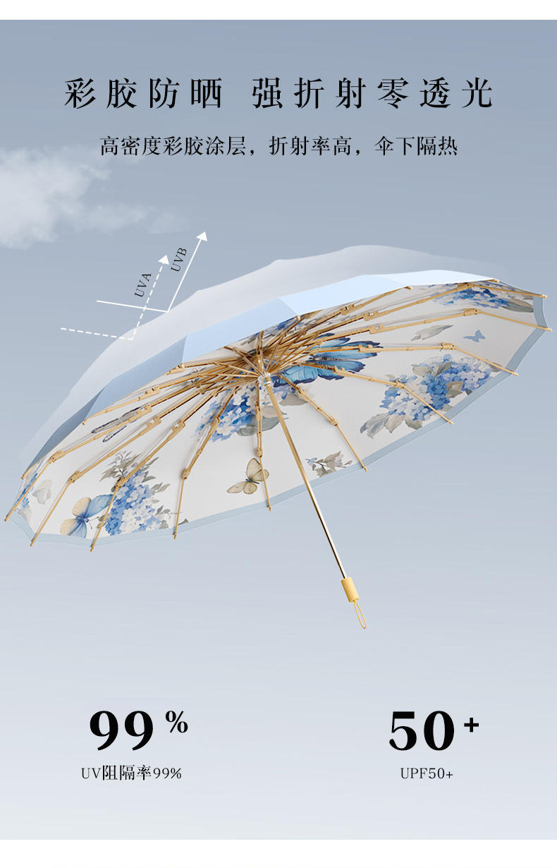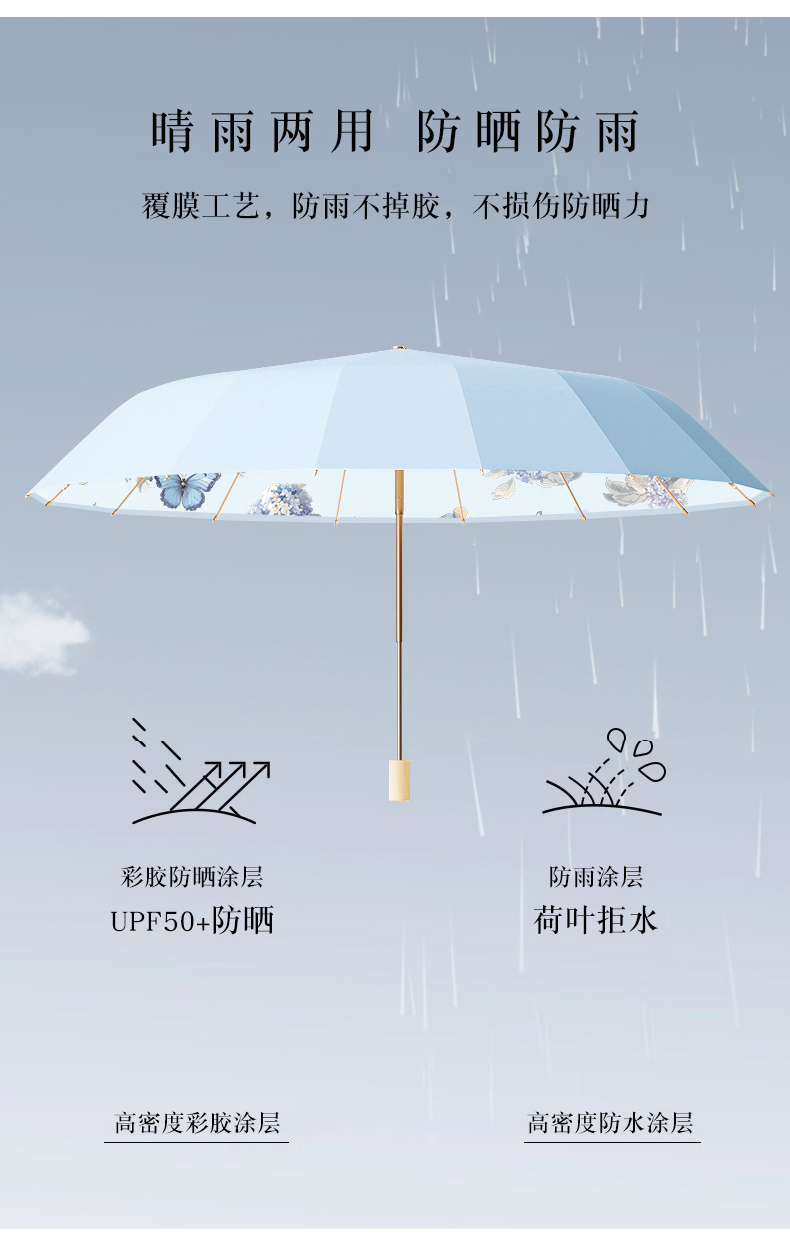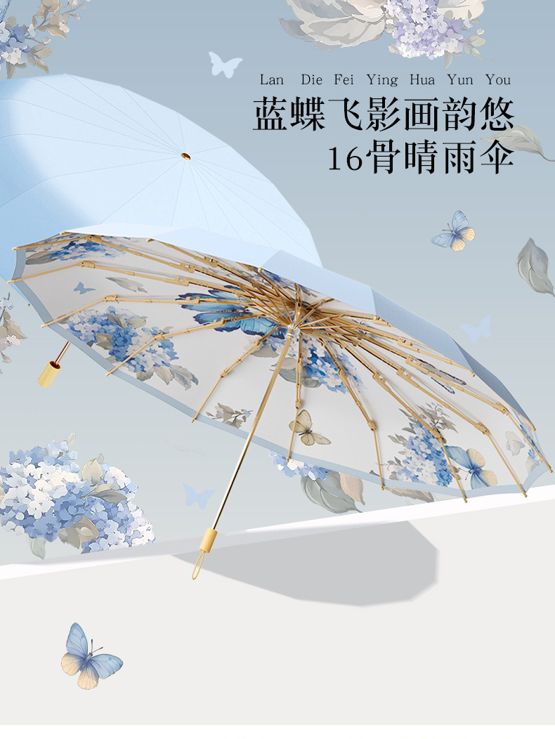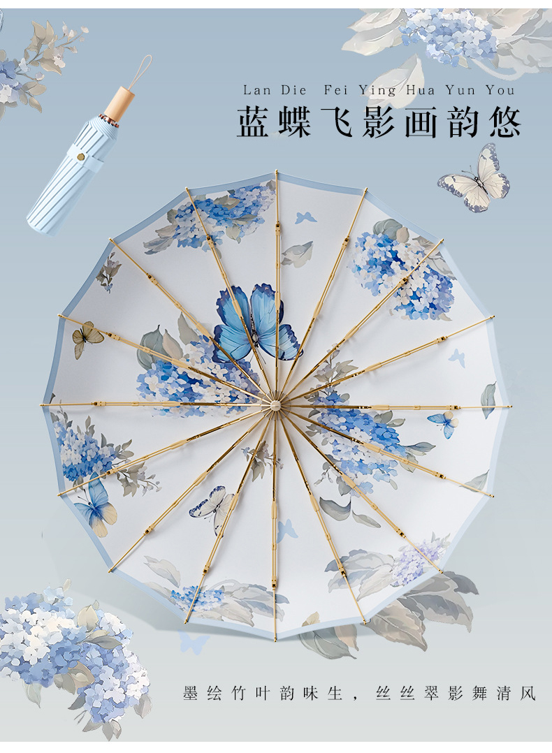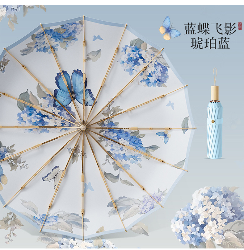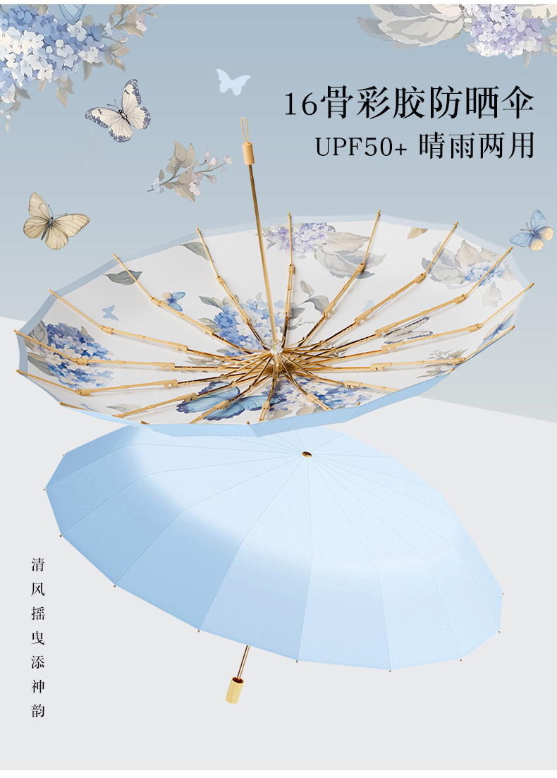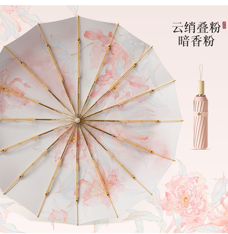 丰懋 蝴蝶古风中国风大号复古16骨彩胶雨伞 FXYB18 61*102cm 云绡叠粉(单位:把)