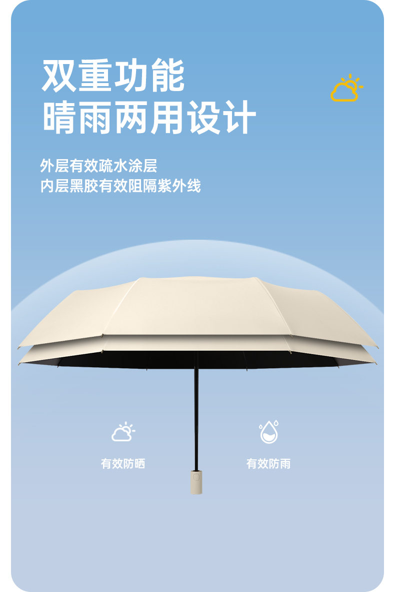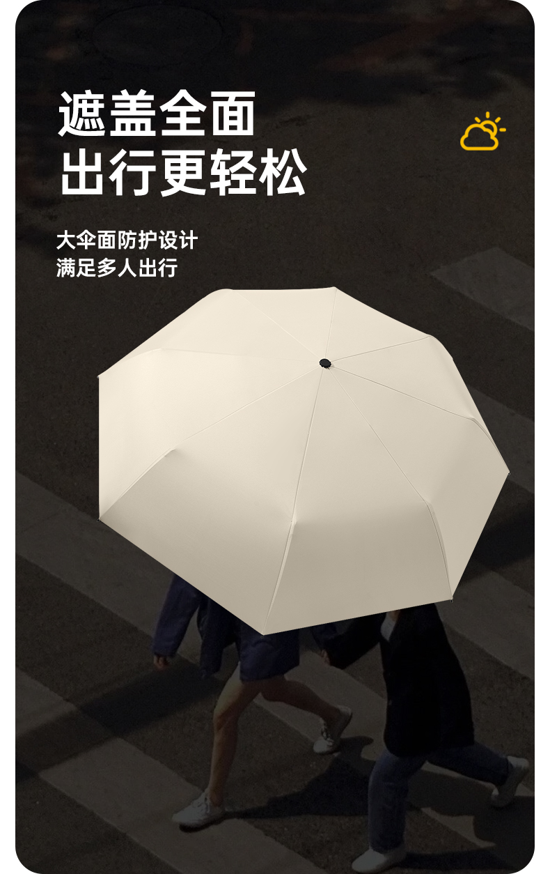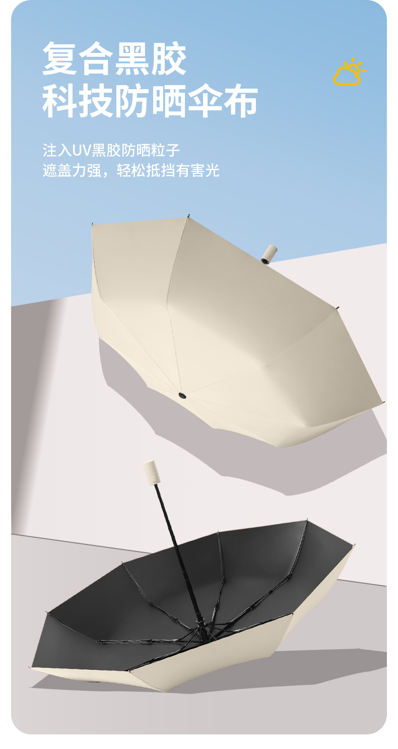 丰懋 黑胶防晒UPF50+折叠纯色两用遮阳雨伞 FXHJ20231006 56*98cm 全自动8骨耀石黑(单位:把)