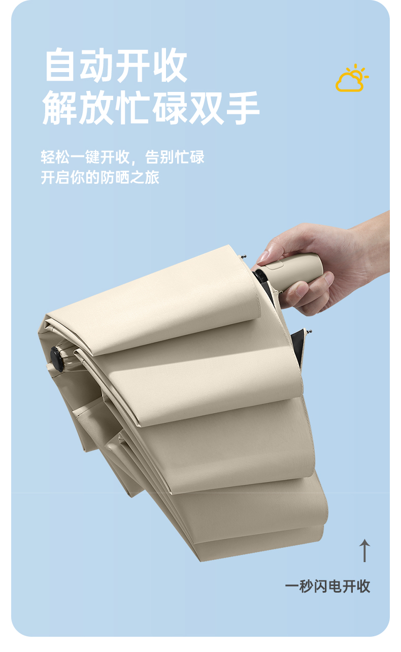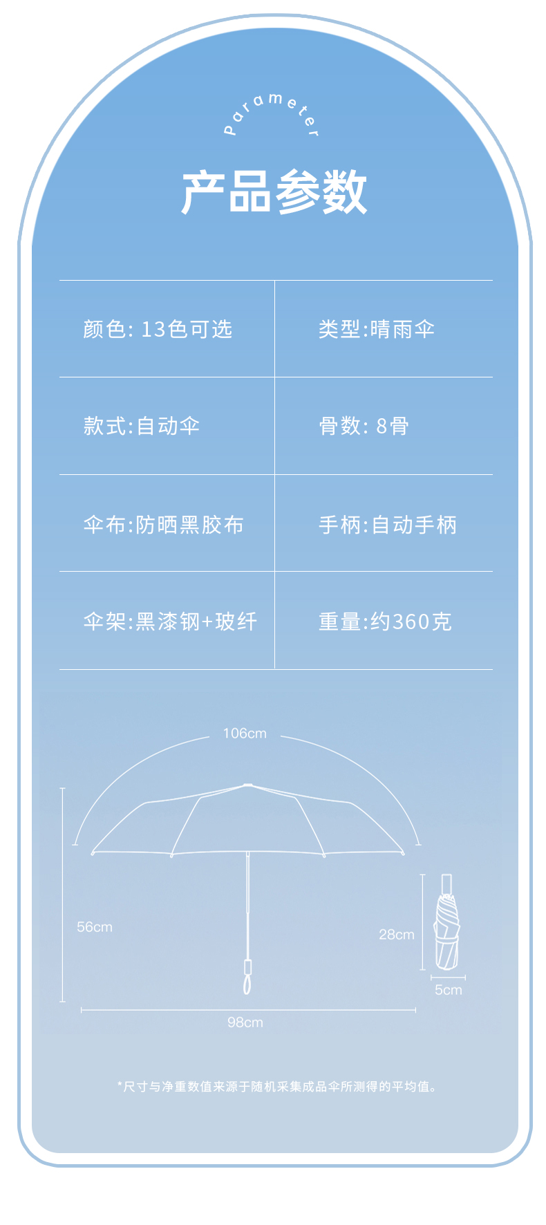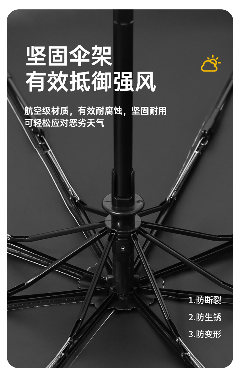 丰懋 黑胶防晒UPF50+折叠纯色两用遮阳雨伞 FXHJ20231006 56*98cm 全自动8骨耀石黑(单位:把)