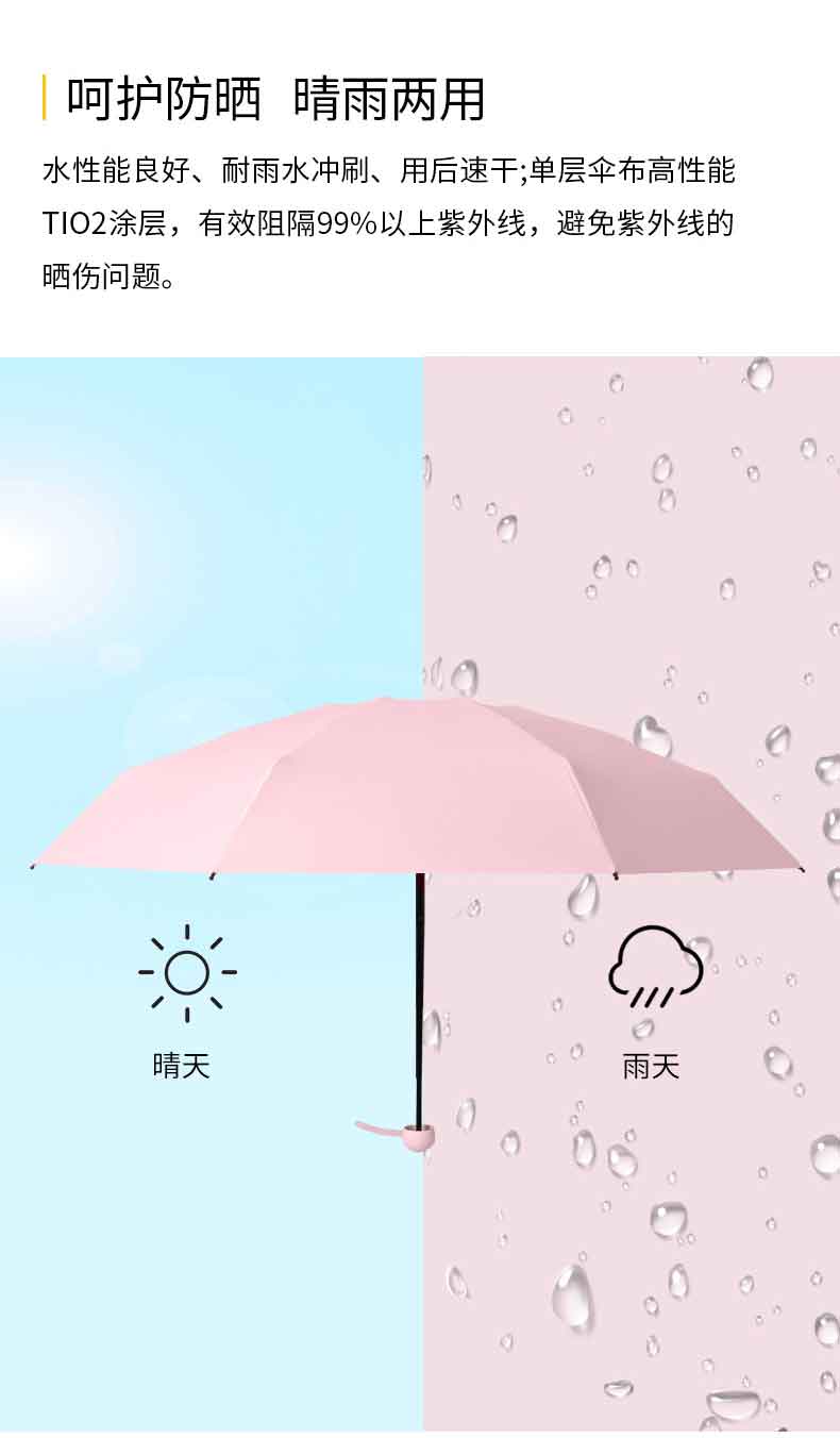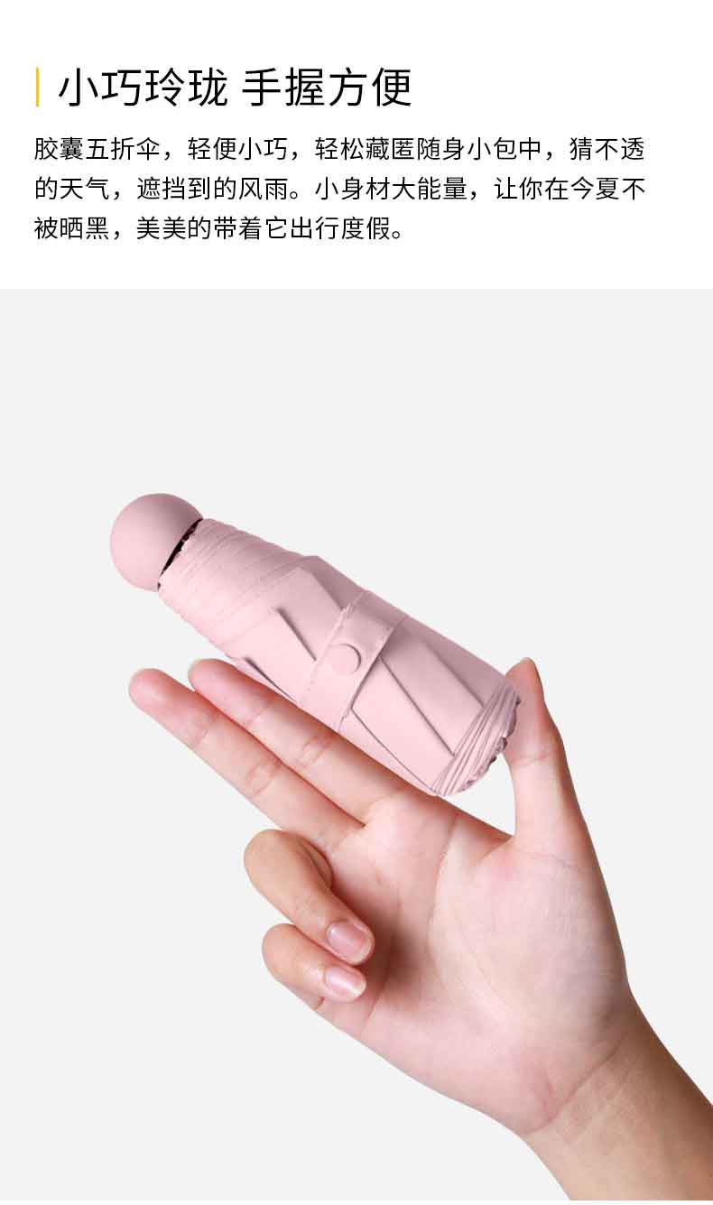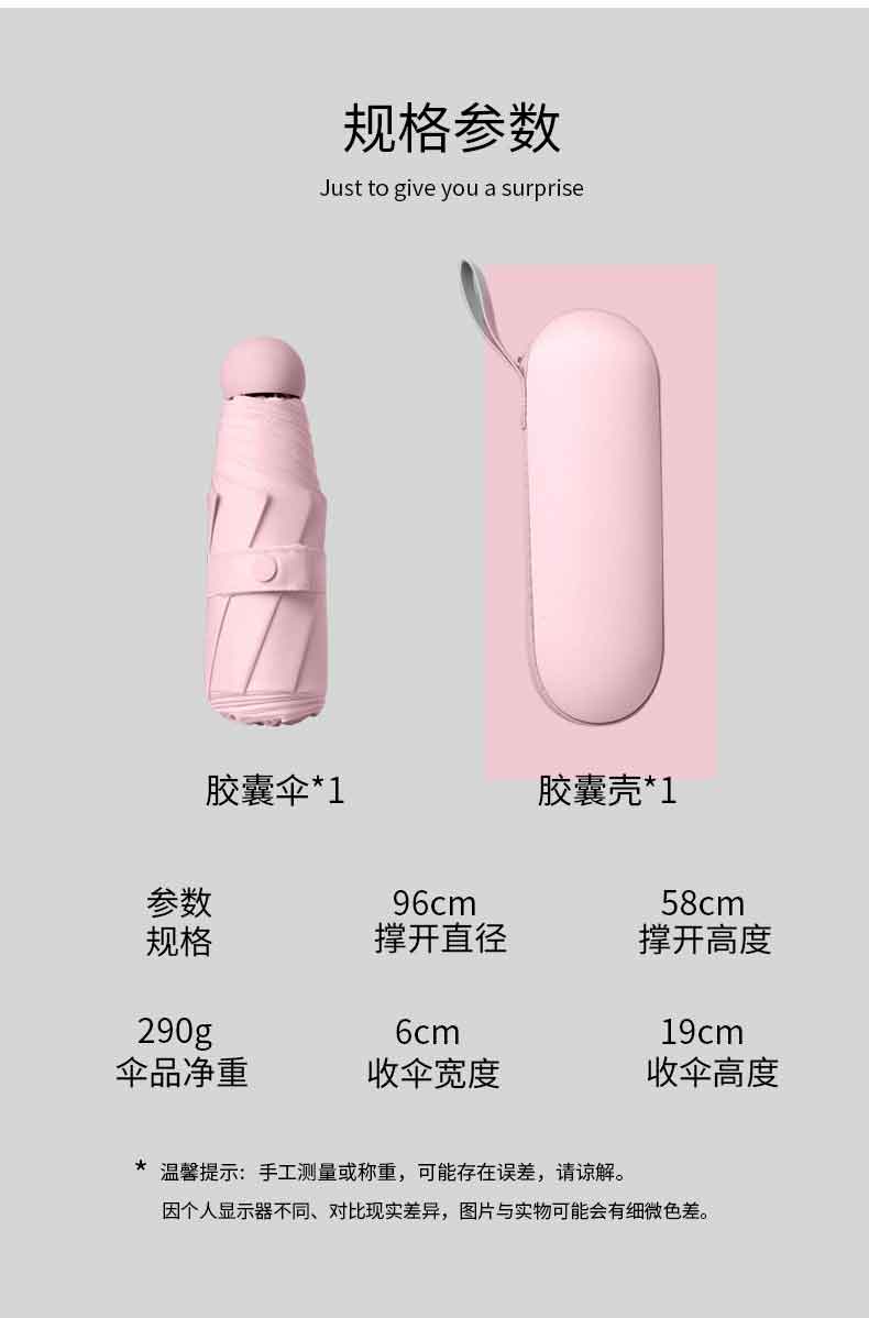 丰懋 遮阳防晒UPF50+太阳伞折叠防紫外线超轻晴雨两用雨伞 FXHJ5002 58*96cm 8骨加大胶囊伞西柚红(单位:把)
