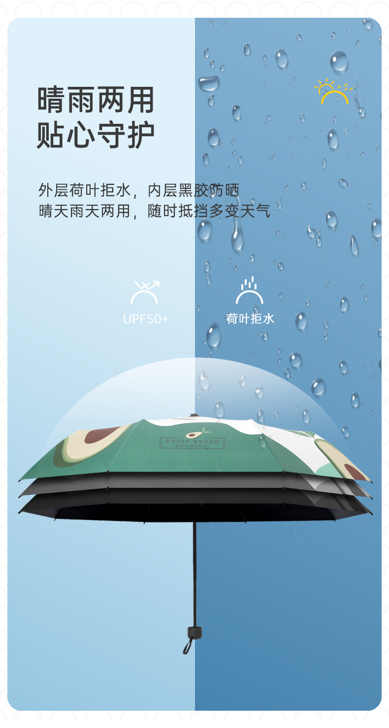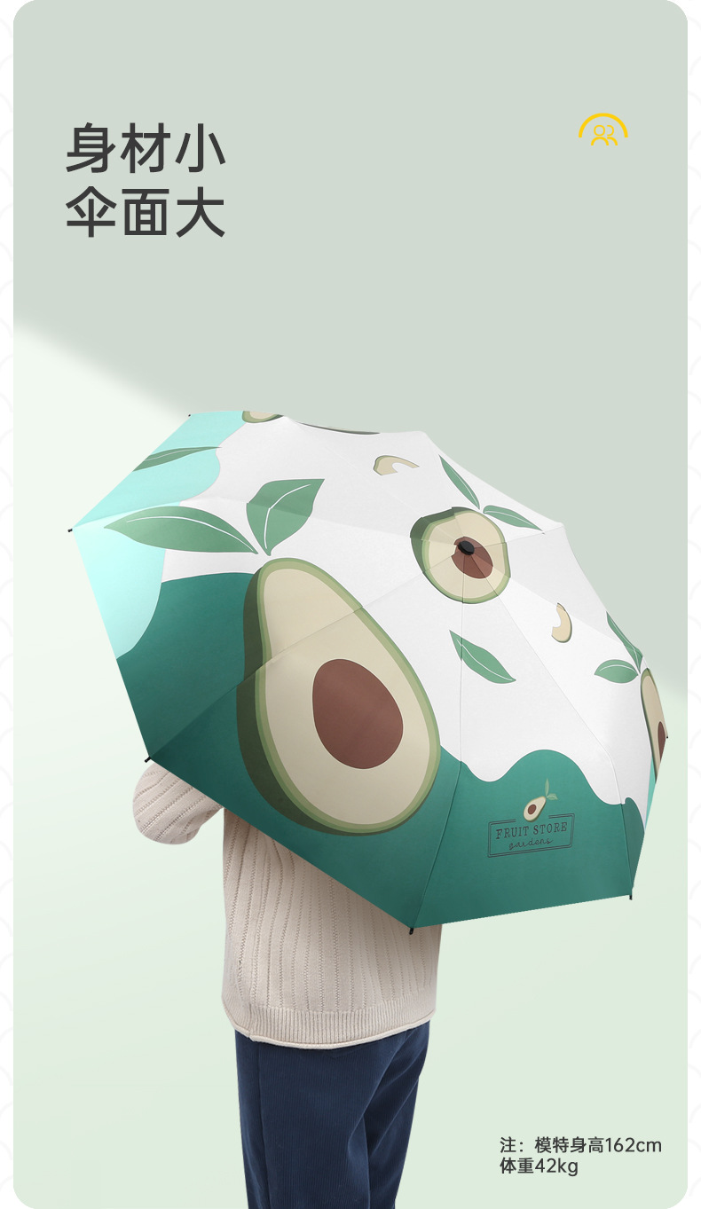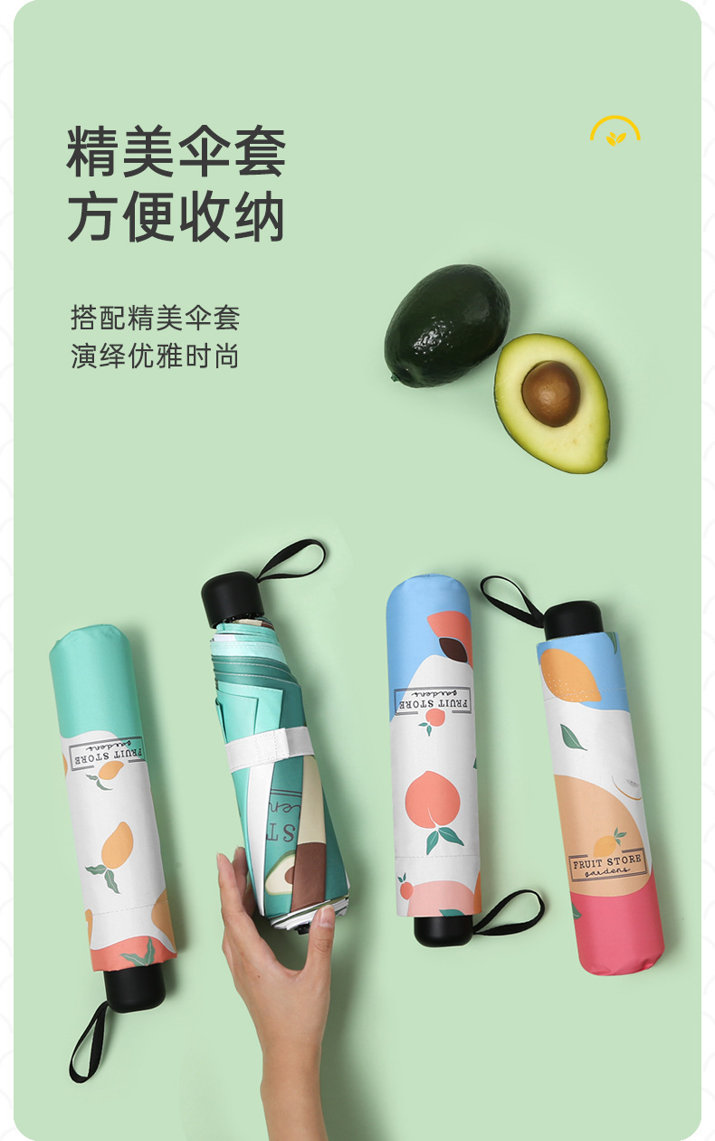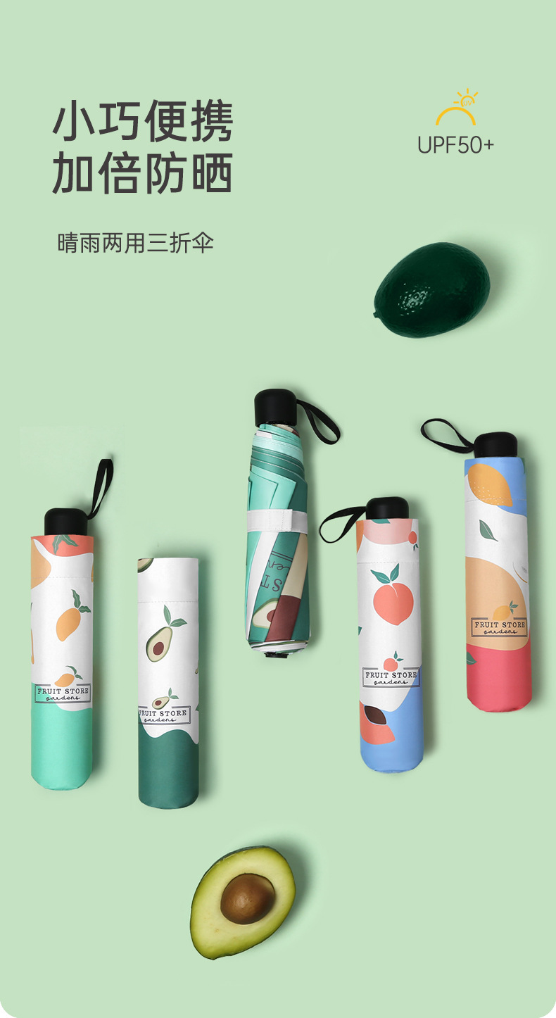 丰懋 小清新防UPF50+隔紫外线黑胶便携折叠雨伞 FXHJ20230224 54.5*98cm 三折芒果(单位:把)