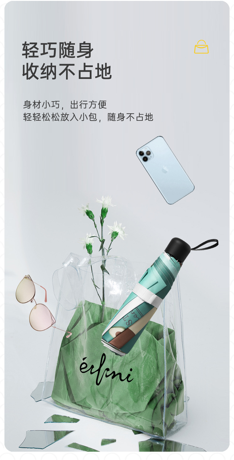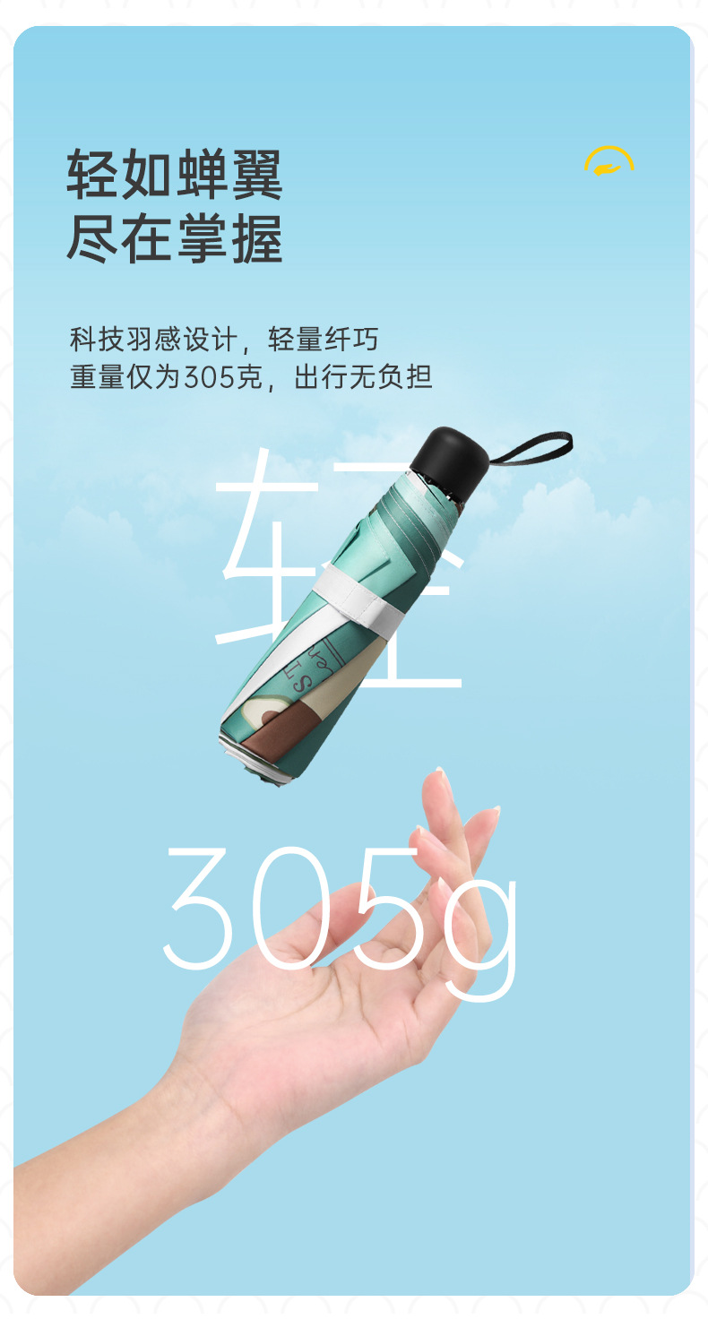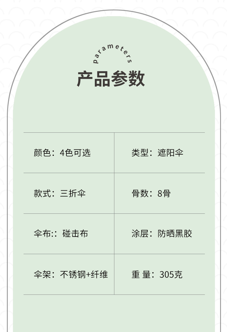 丰懋 小清新防UPF50+隔紫外线黑胶便携折叠雨伞 FXHJ20230224 54.5*98cm 三折芒果(单位:把)