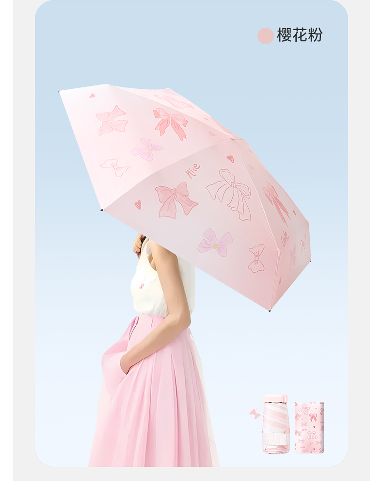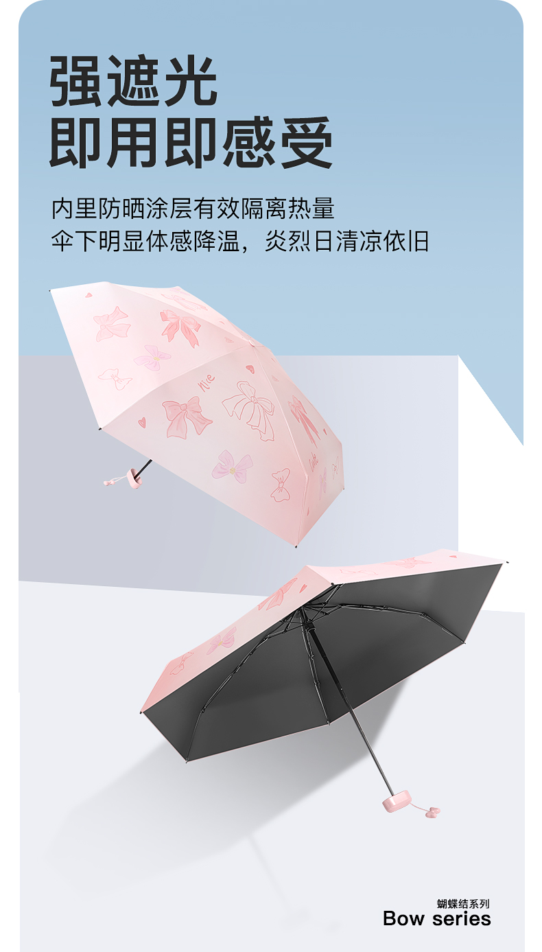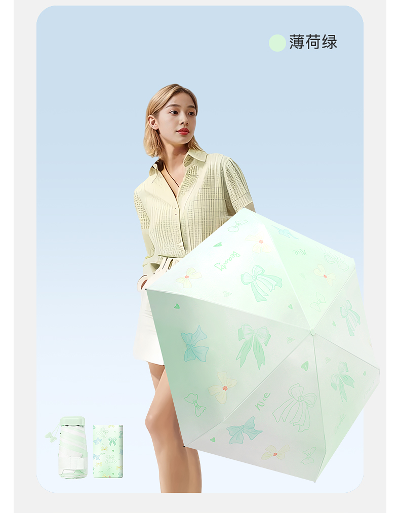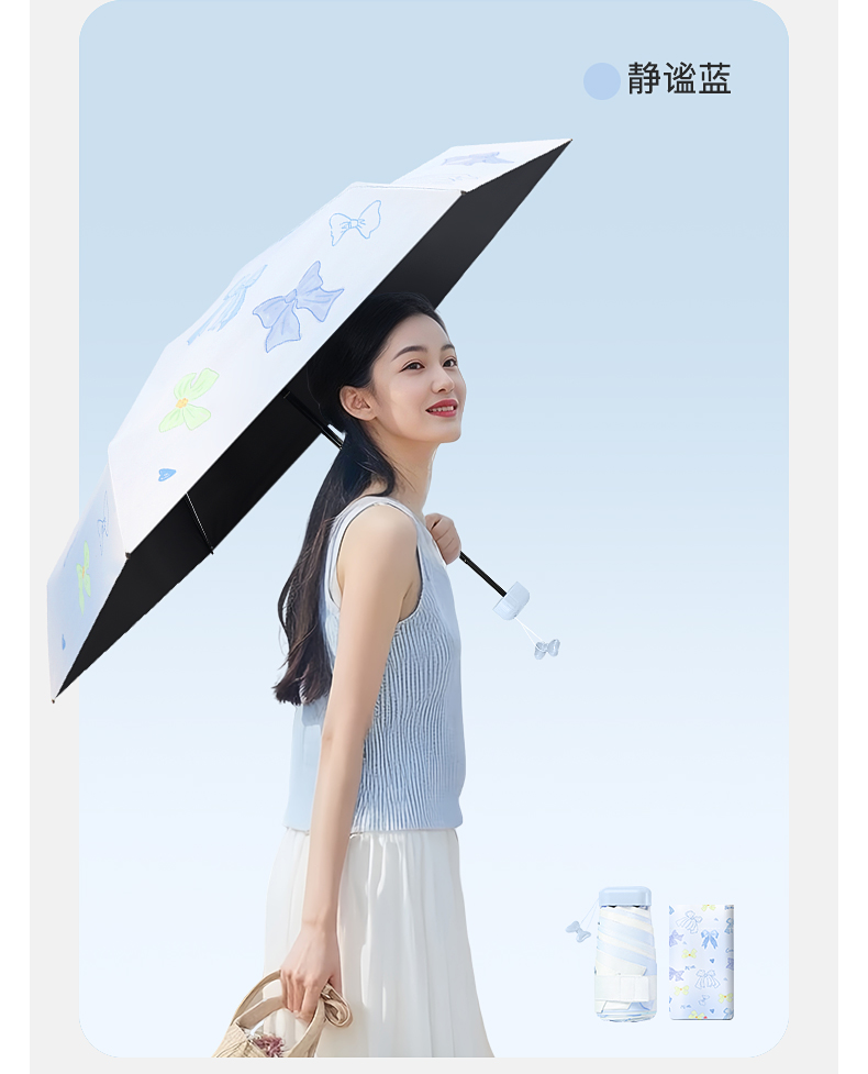 丰懋 晴雨两用轻便小清新扁六折口袋雨伞 FXHJ20250312 50*89cm 蝴蝶结款静谧蓝(单位:把)