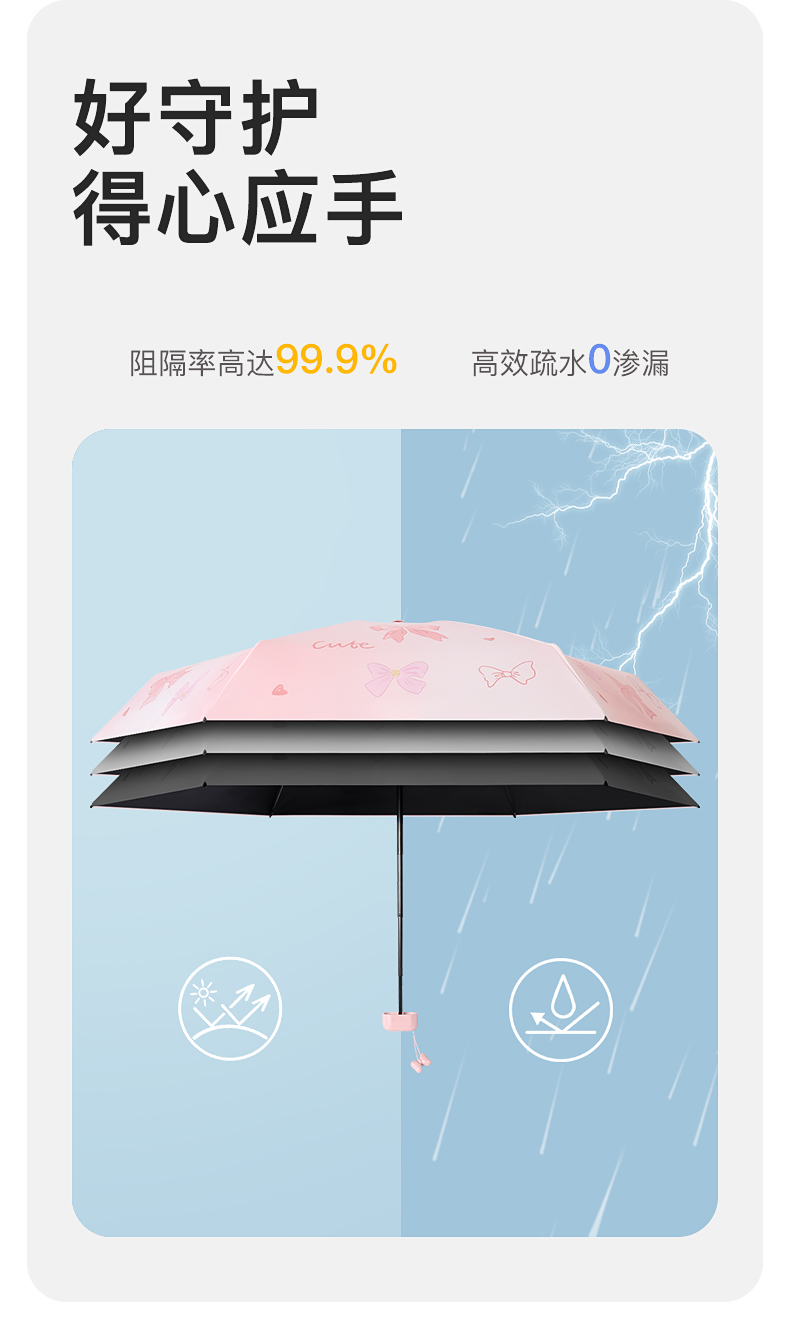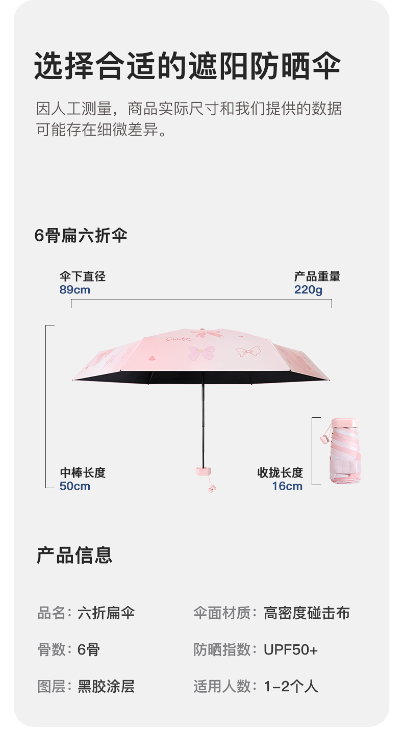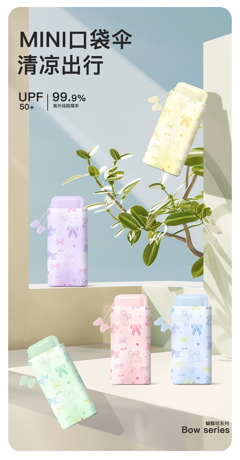丰懋 晴雨两用轻便小清新扁六折口袋雨伞 FXHJ20250312 50*89cm 蝴蝶结款静谧蓝(单位:把)