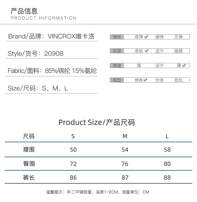 唯卡洛vincrox 瑜伽裤 运动健身休闲 裸感速干提臀蜜桃臀运动紧身外穿运动长裤20908 浅莲灰M
