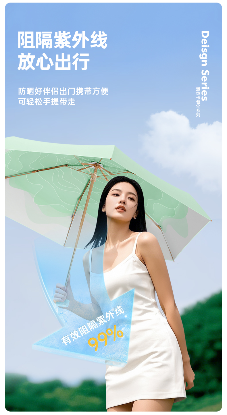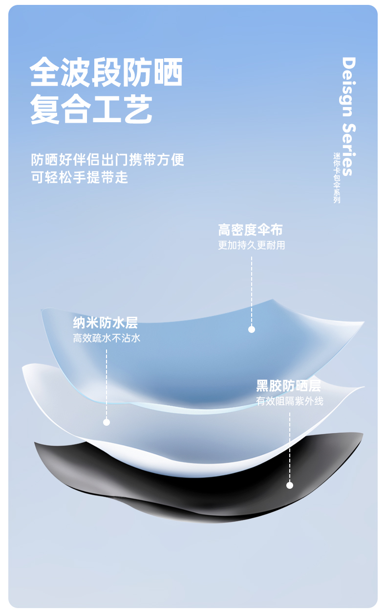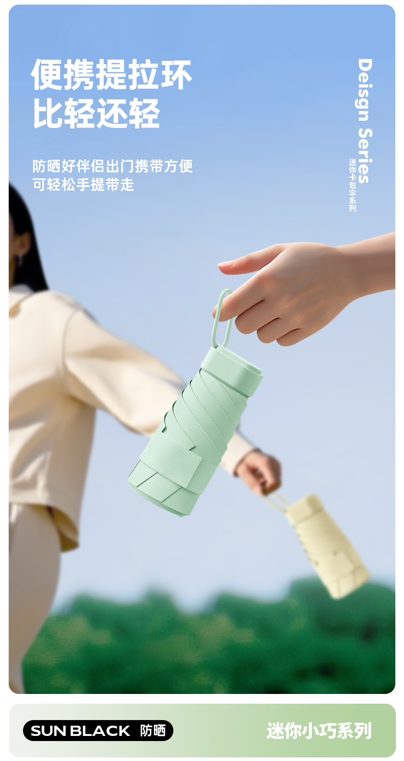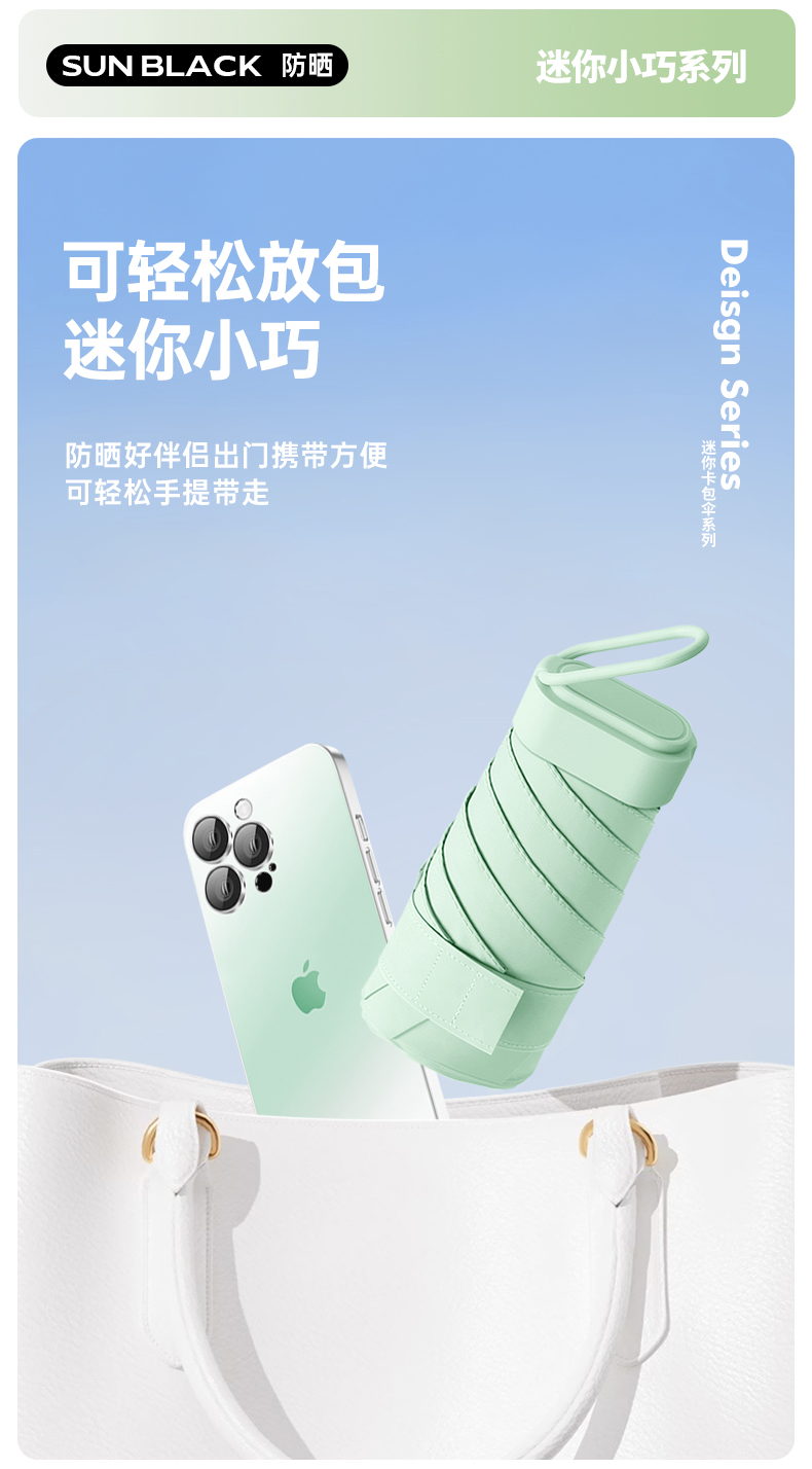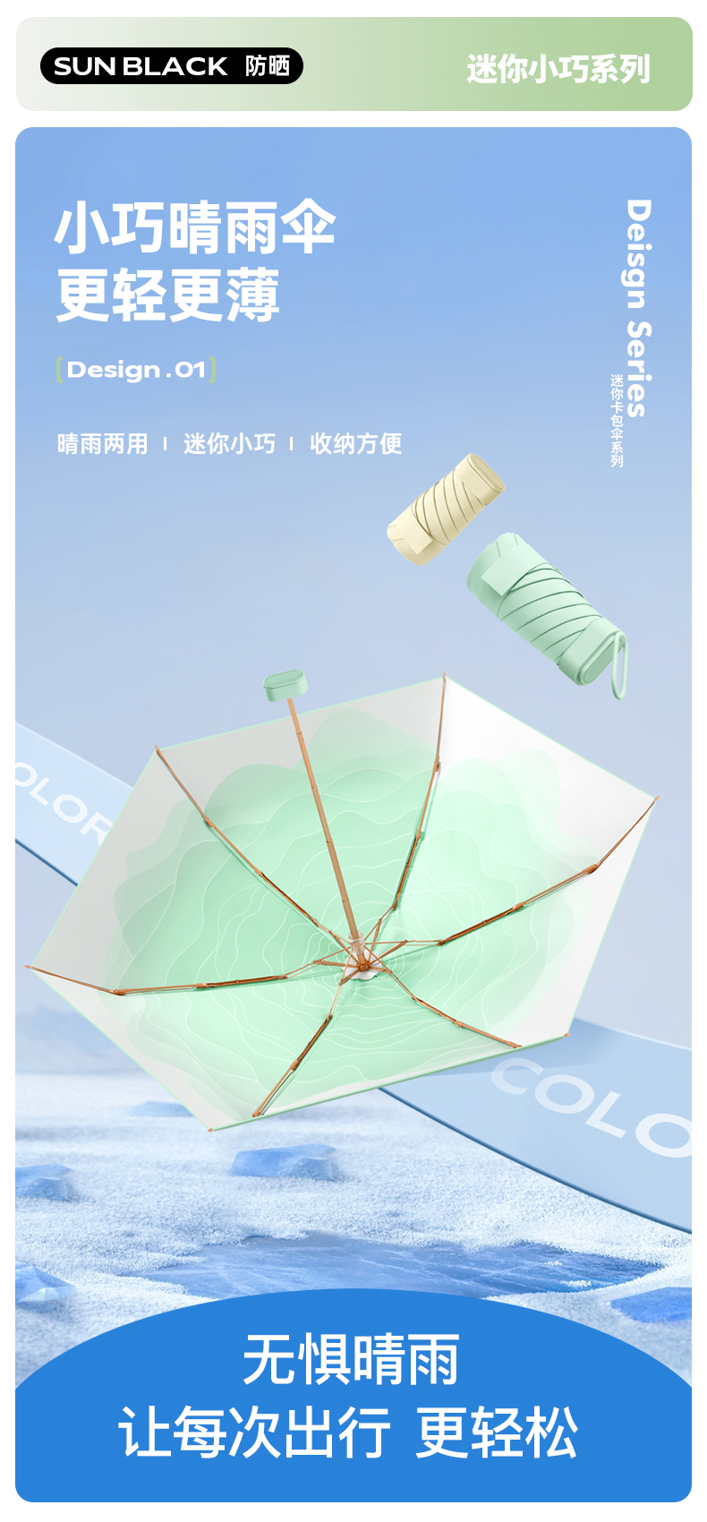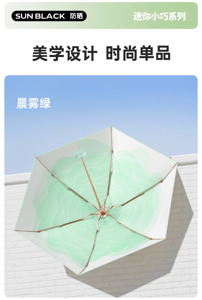 丰懋 时尚便捷彩胶遮阳伞小巧迷你晴雨两用雨伞 FXHJ20250303 52*90cm 扁六折冰川蓝(单位:把)