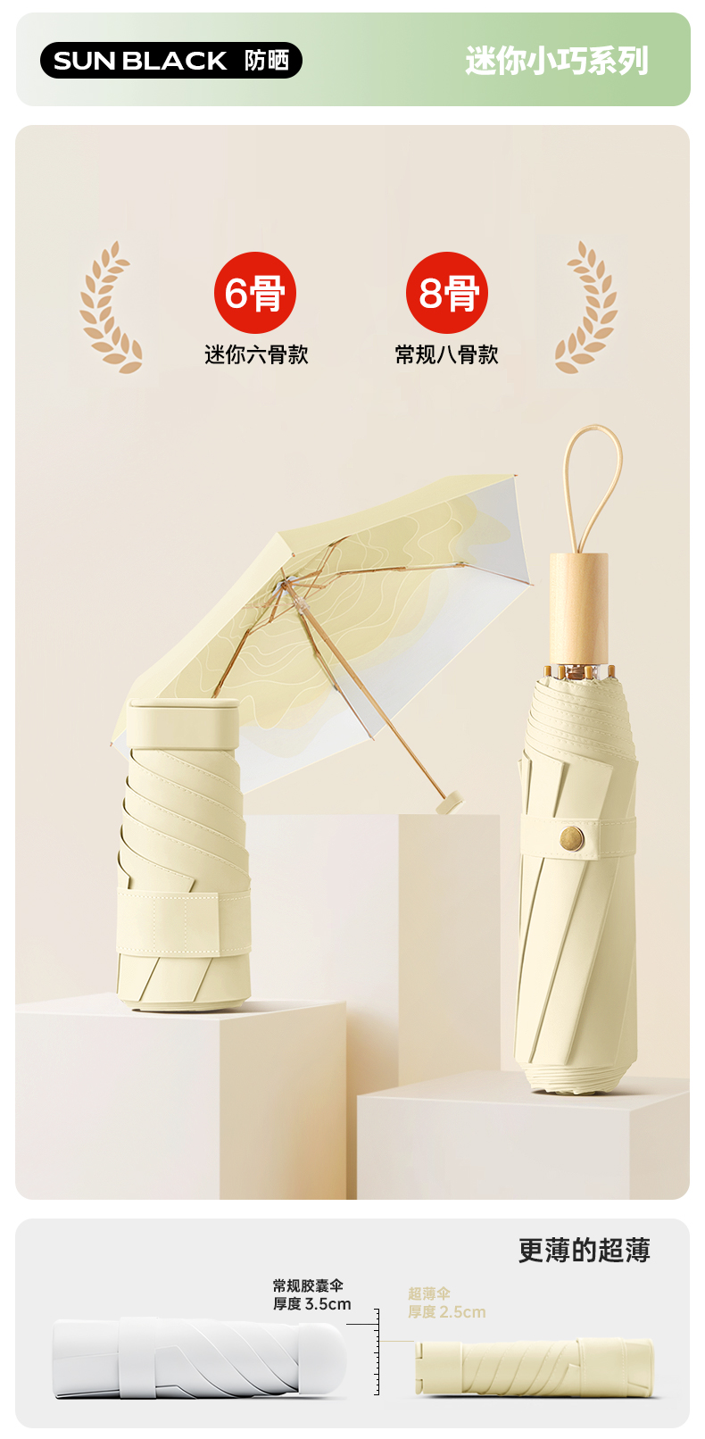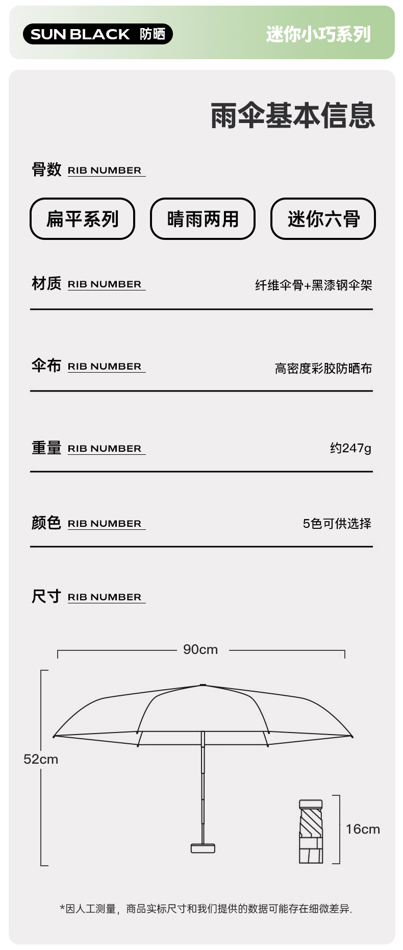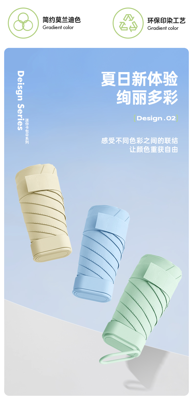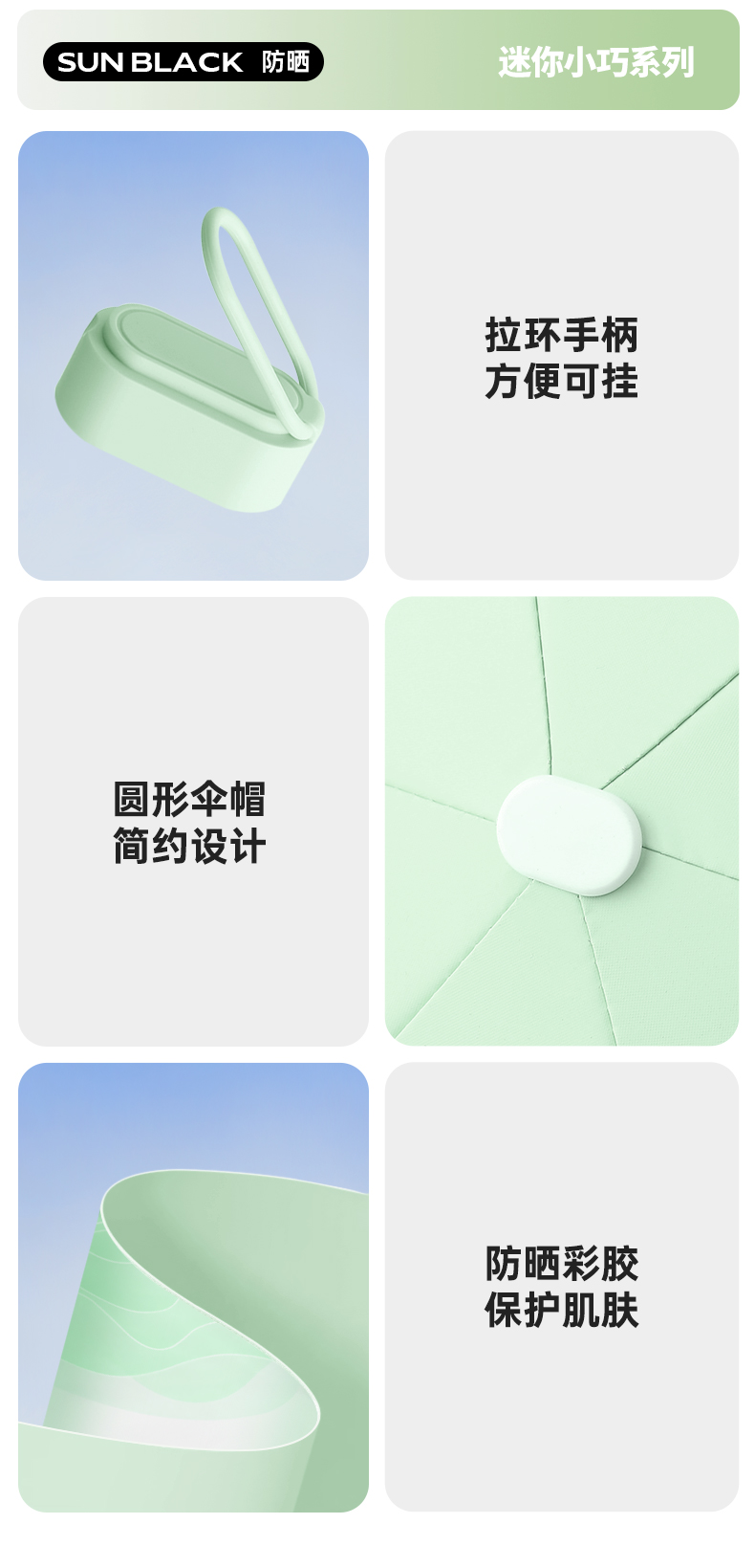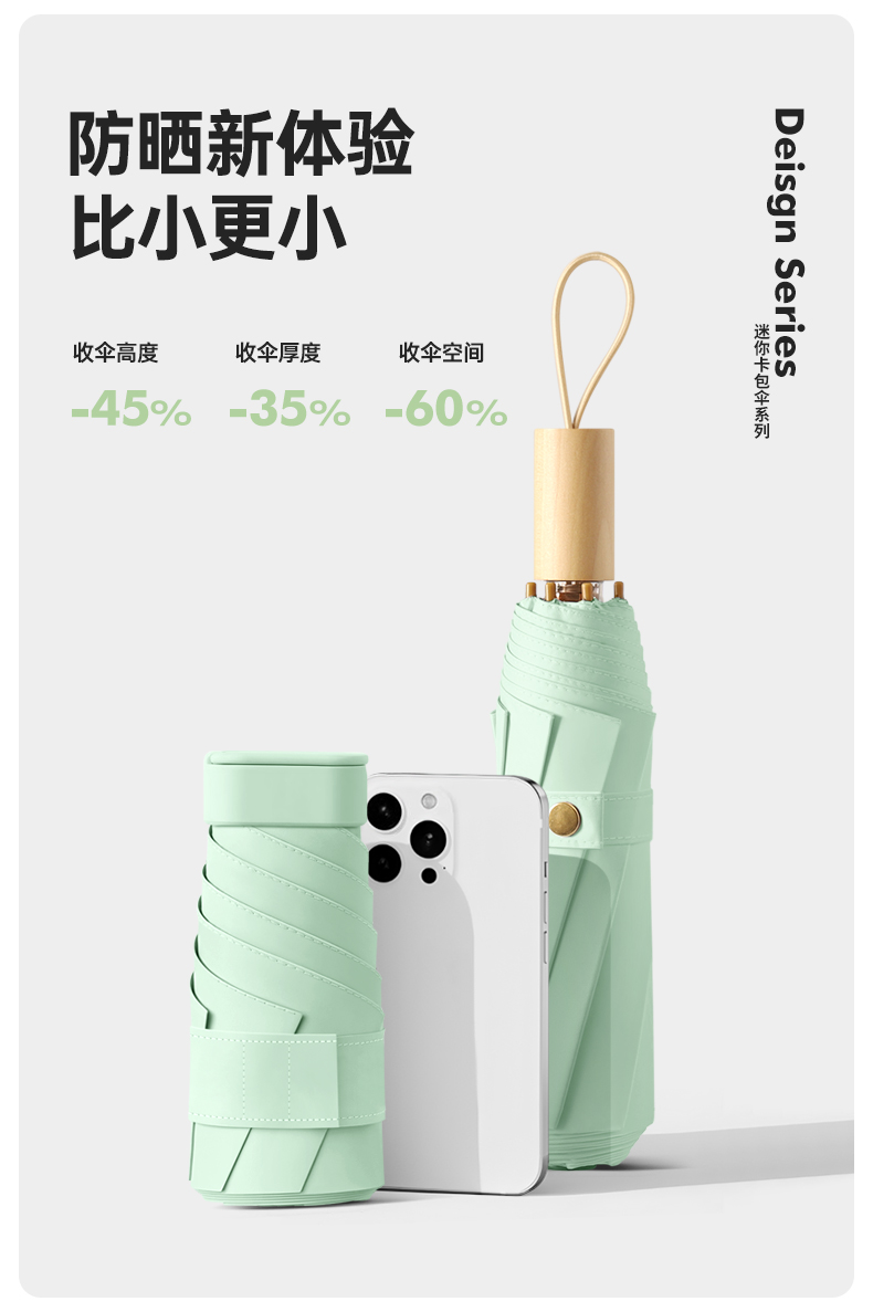 丰懋 时尚便捷彩胶遮阳伞小巧迷你晴雨两用雨伞 FXHJ20250303 52*90cm 扁六折冰川蓝(单位:把)