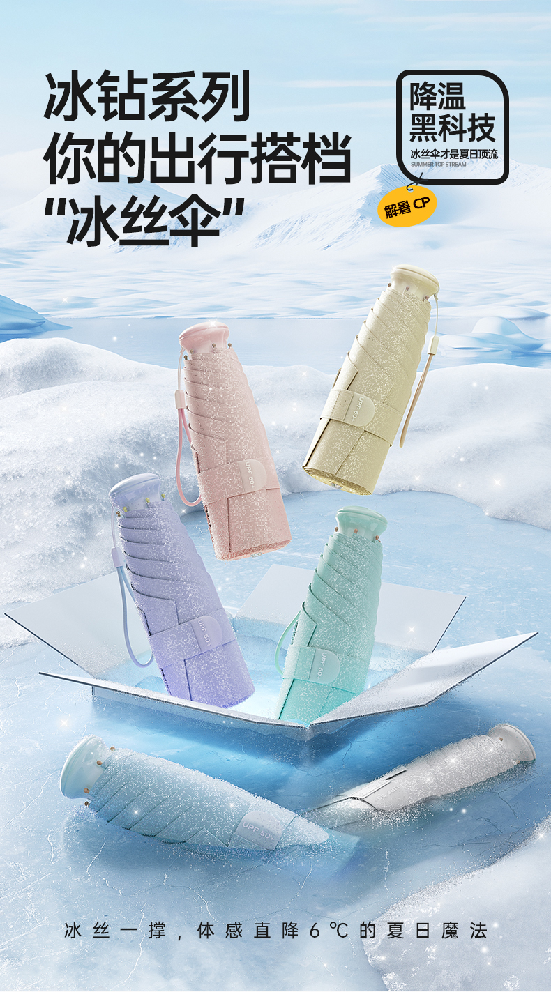 丰懋 迷你超轻冰丝伞防紫外线UPF50+晴雨两用雨伞 FXHJ20250505 51*91cm 五折6骨萝兰紫(单位:把)