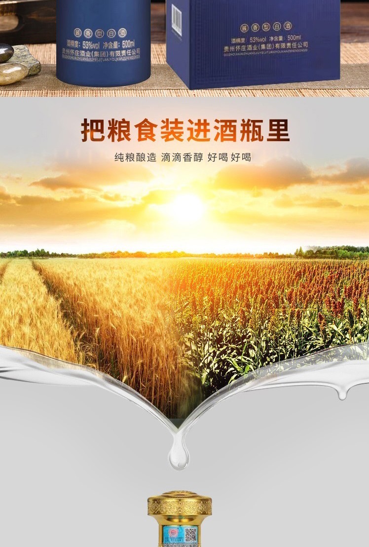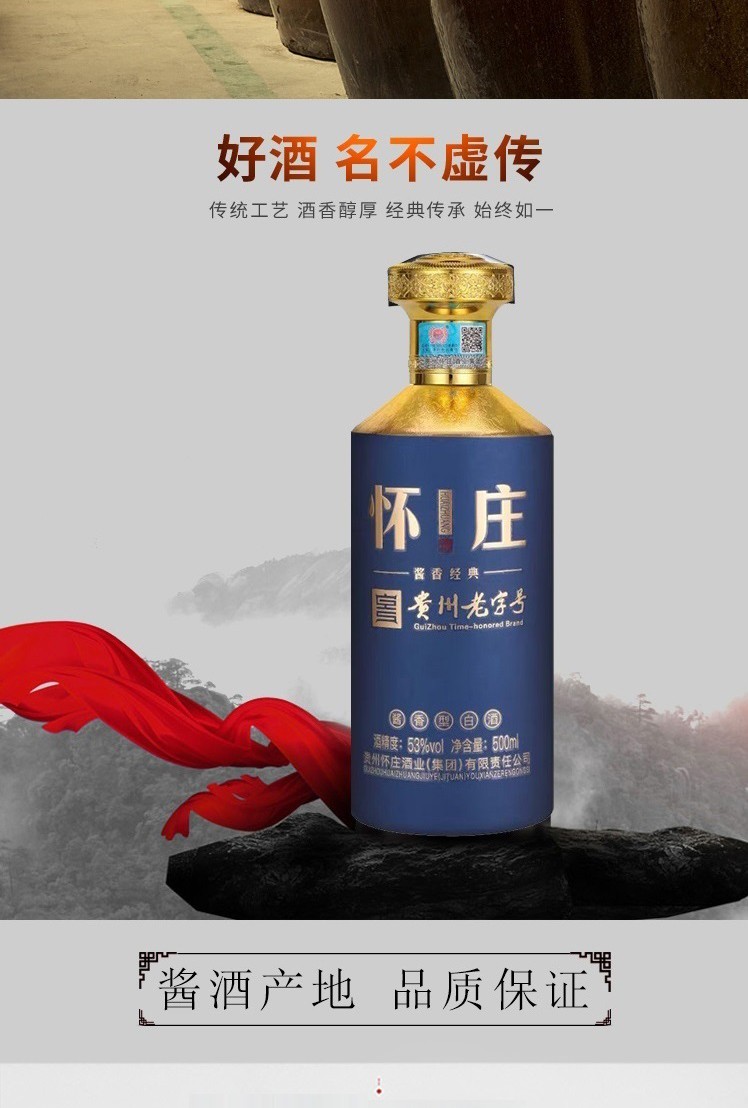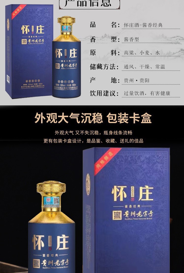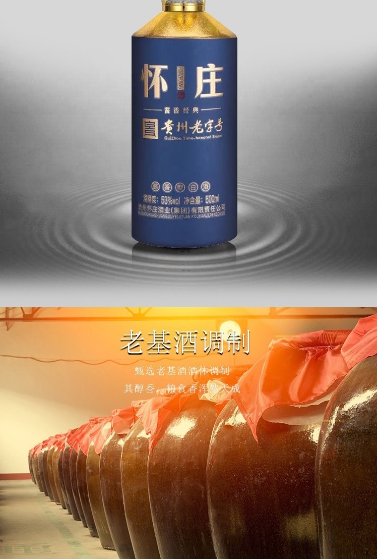 【贵州老字号】怀庄酒 53度茅台镇酱香型坤沙粮食酒500ml *6瓶怀庄酒酱香经典
