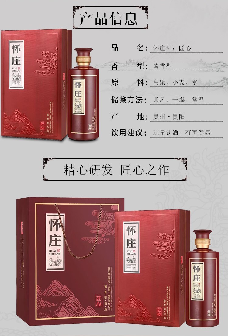 【贵州老字号】怀庄酒 53度茅台镇酱香型坤沙粮食酒500ml *6瓶怀庄酒匠心礼盒