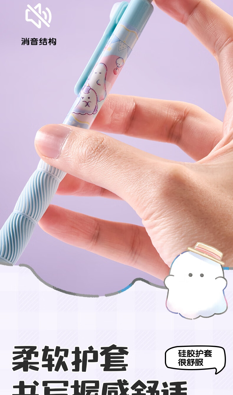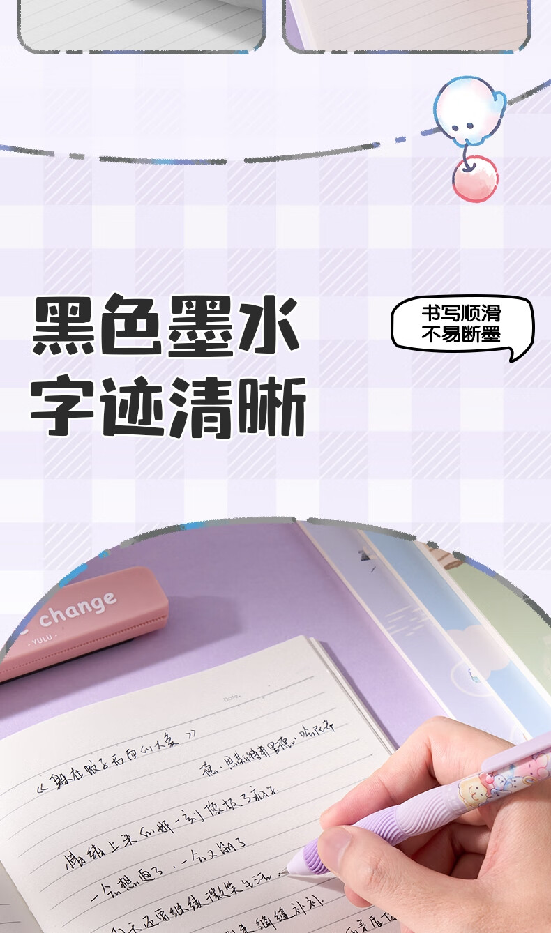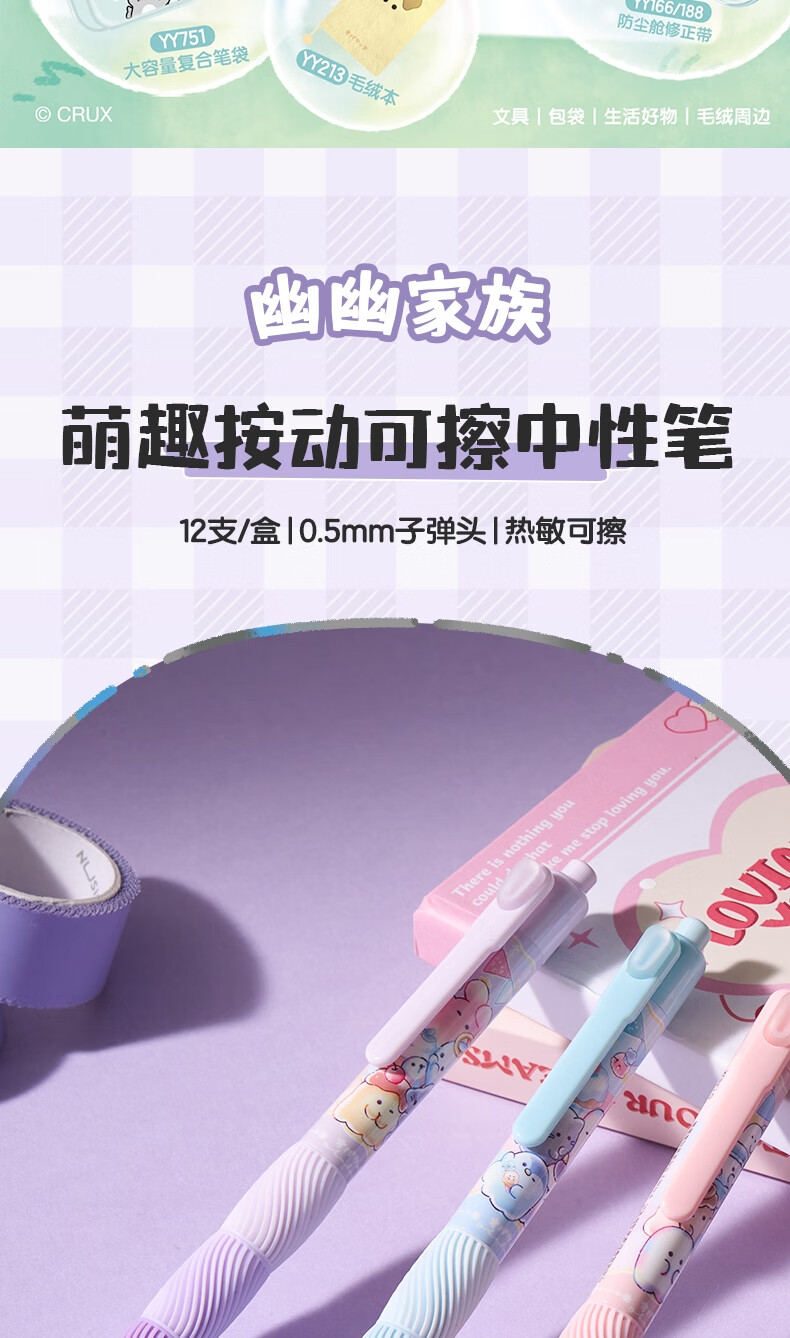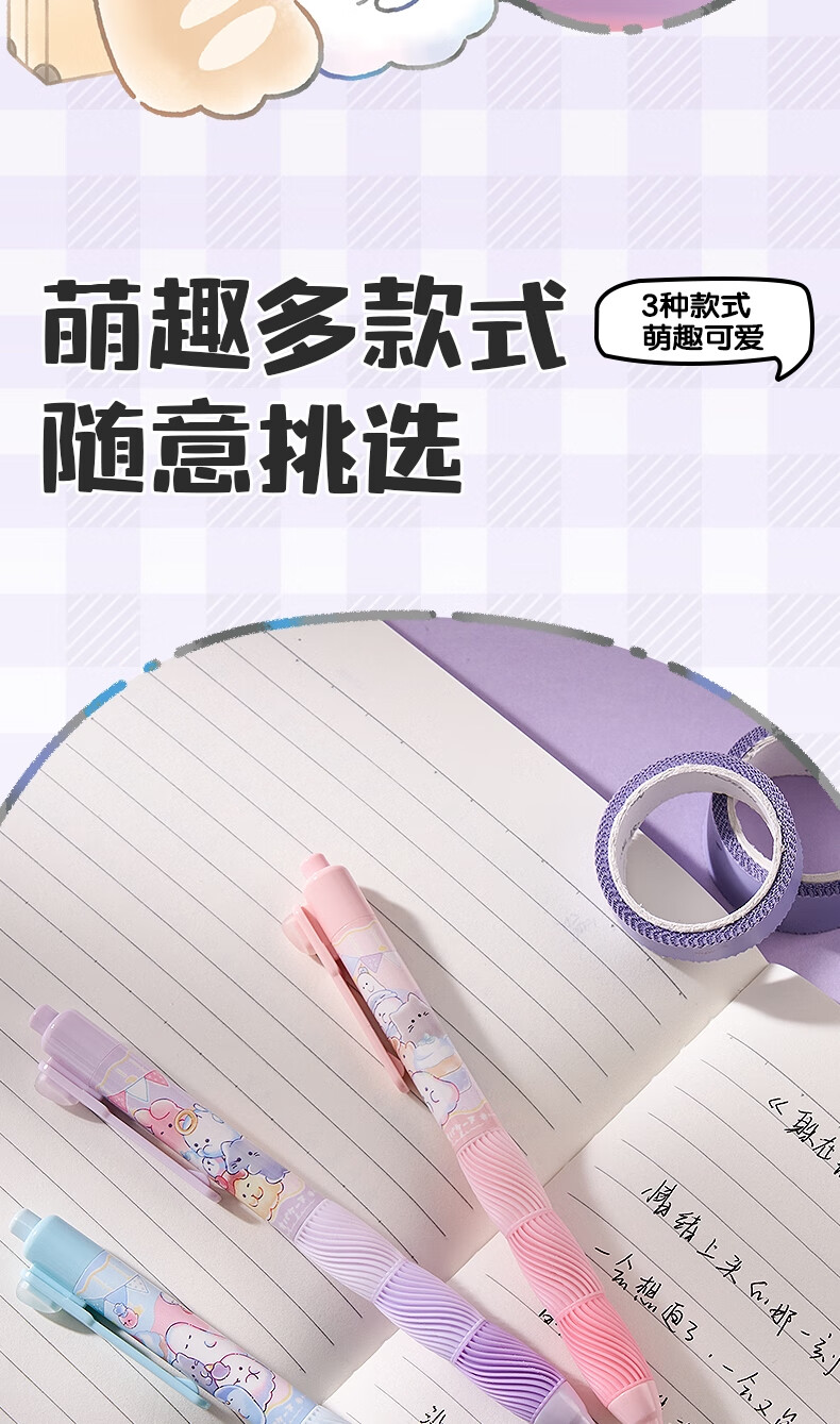 得力(deli) 幽幽家族可擦按动速干中性笔 YY008 12支 0.5mm 黑色(单位:盒)