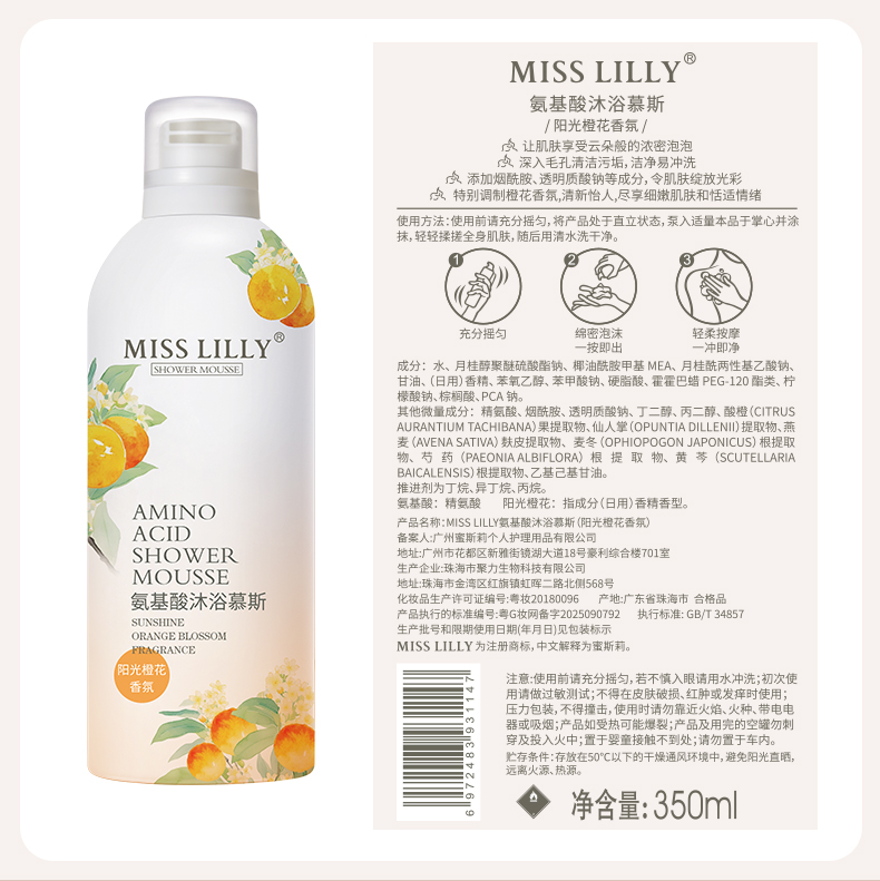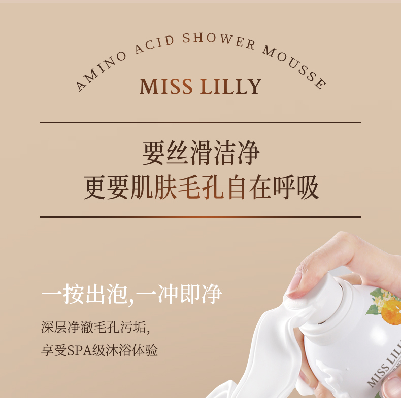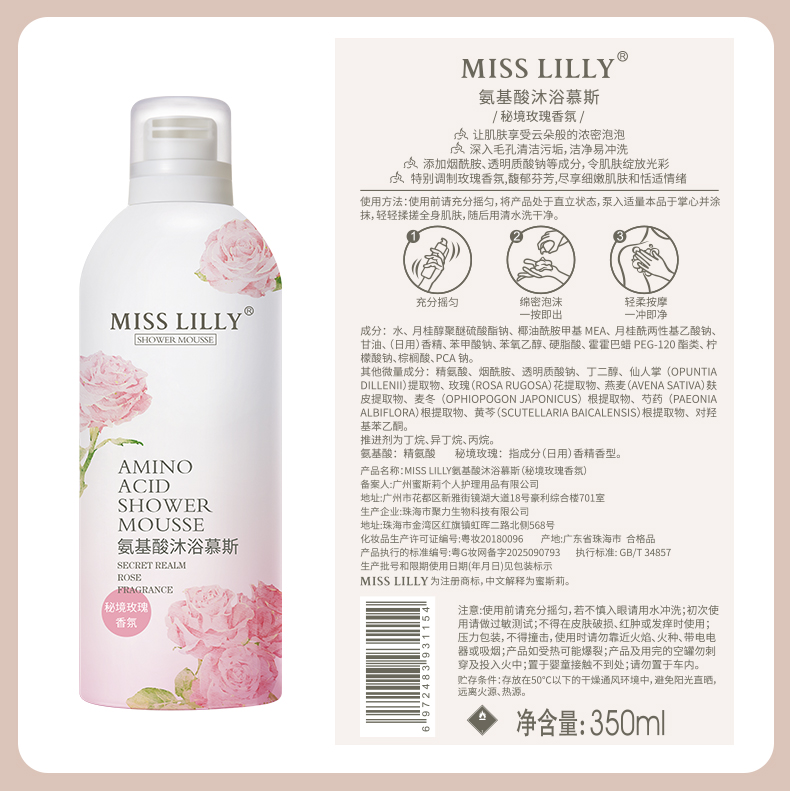 蜜斯莉 MISS LILLY 氨基酸沐浴慕斯 秘境玫瑰 350ml 粉色(单位:瓶)