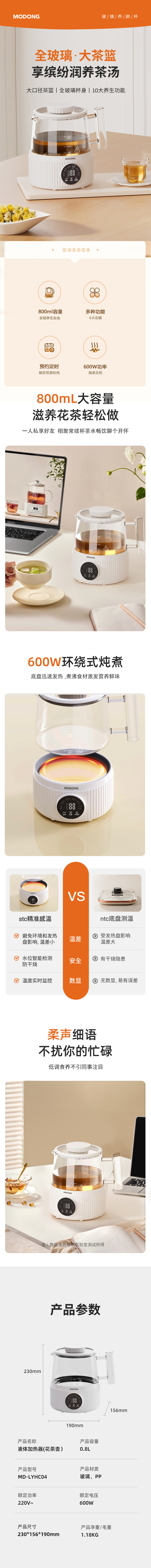 摩动(MODONG) 养生壶 MD-LYHC04 0.8L 白色(单位:台)