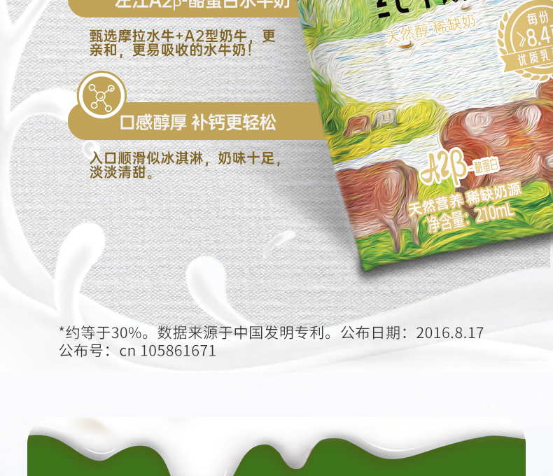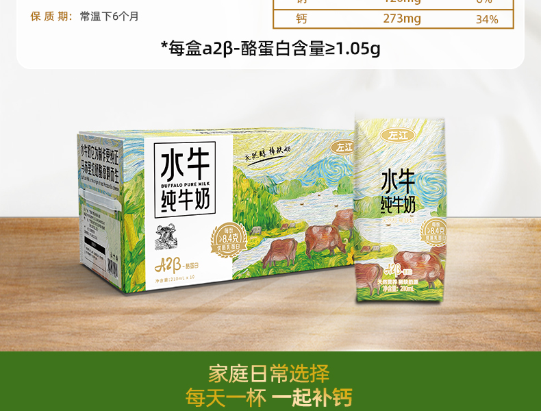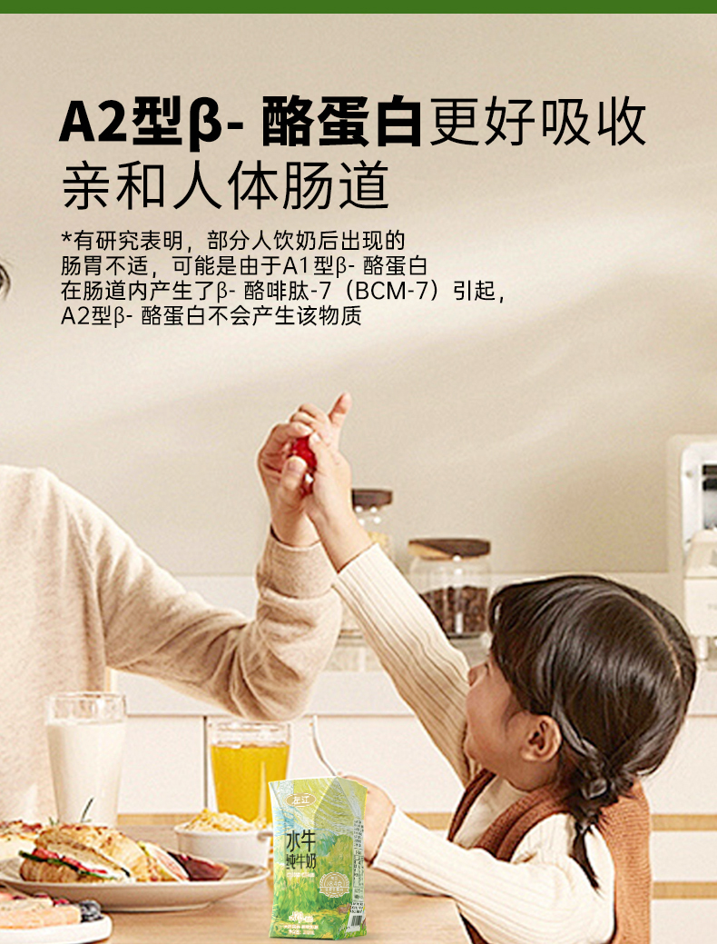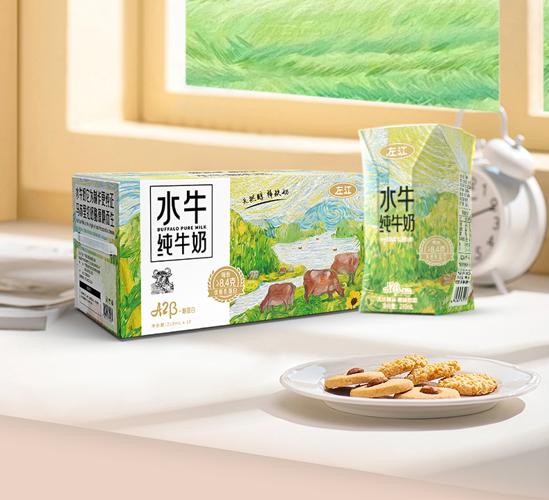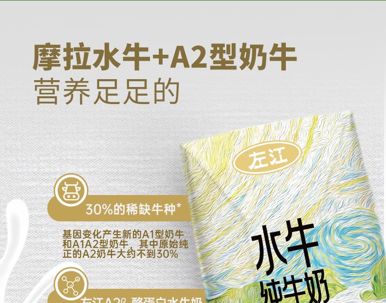 左江 添加a2β-酪蛋白 水牛纯牛奶 210ml*10盒 雾雨绿(单位:提)
