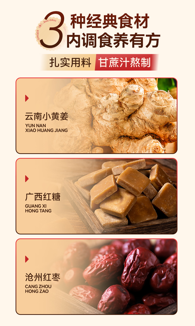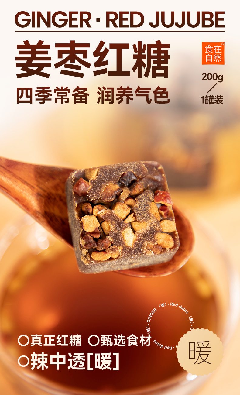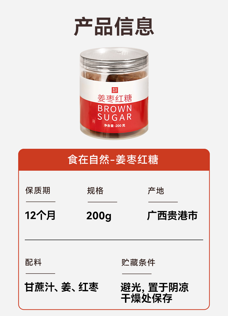 食在自然/DINENATURALLY 红糖正宗甘蔗 姜枣红糖 200g*3瓶 深灰色(单位:组)