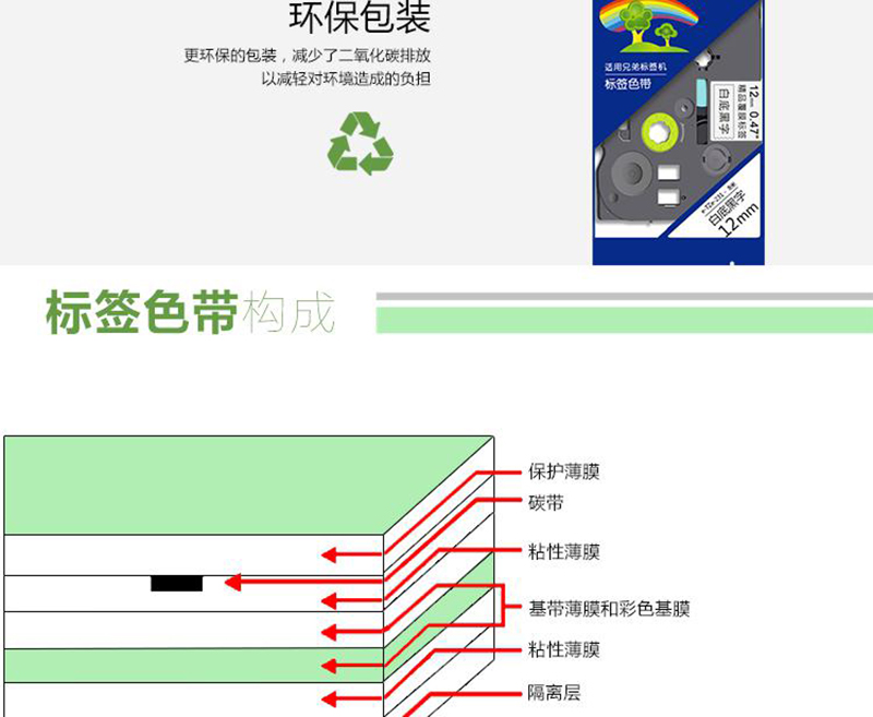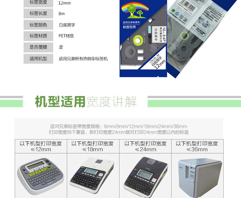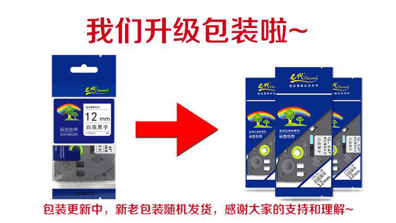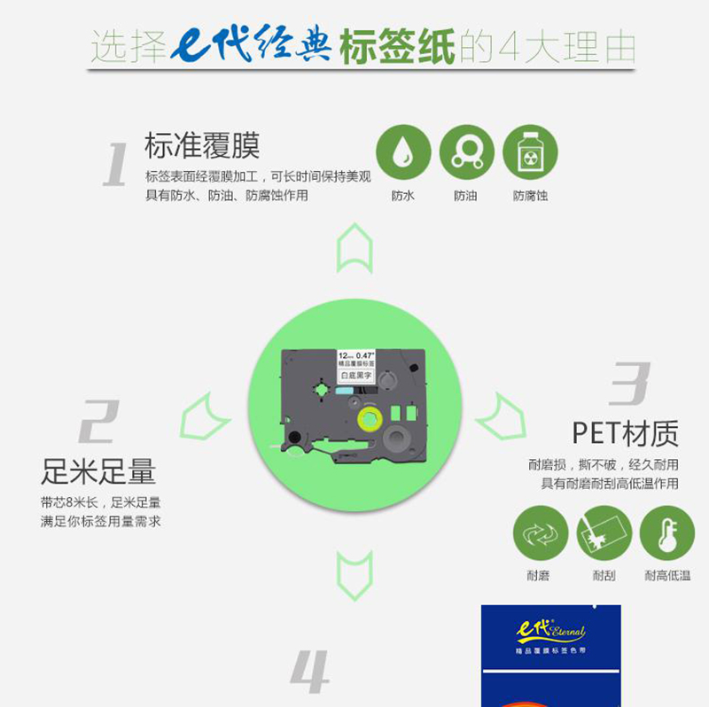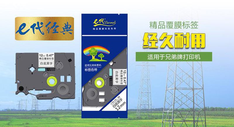 E代经典 TZE-231 12MM 标签打印机色带 白底黑字/个 黑色