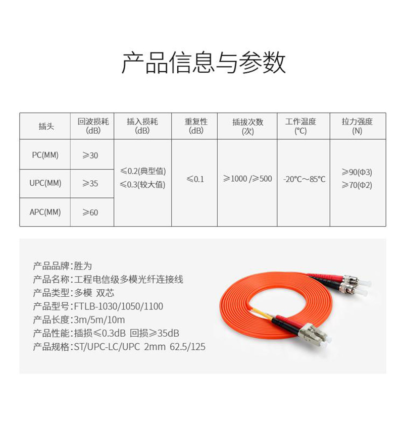 胜为 SHENGWEI FTLB-1030 工程电信级光纤跳线 ST(UPC)-LC(UPC)多模双芯 3米 随机