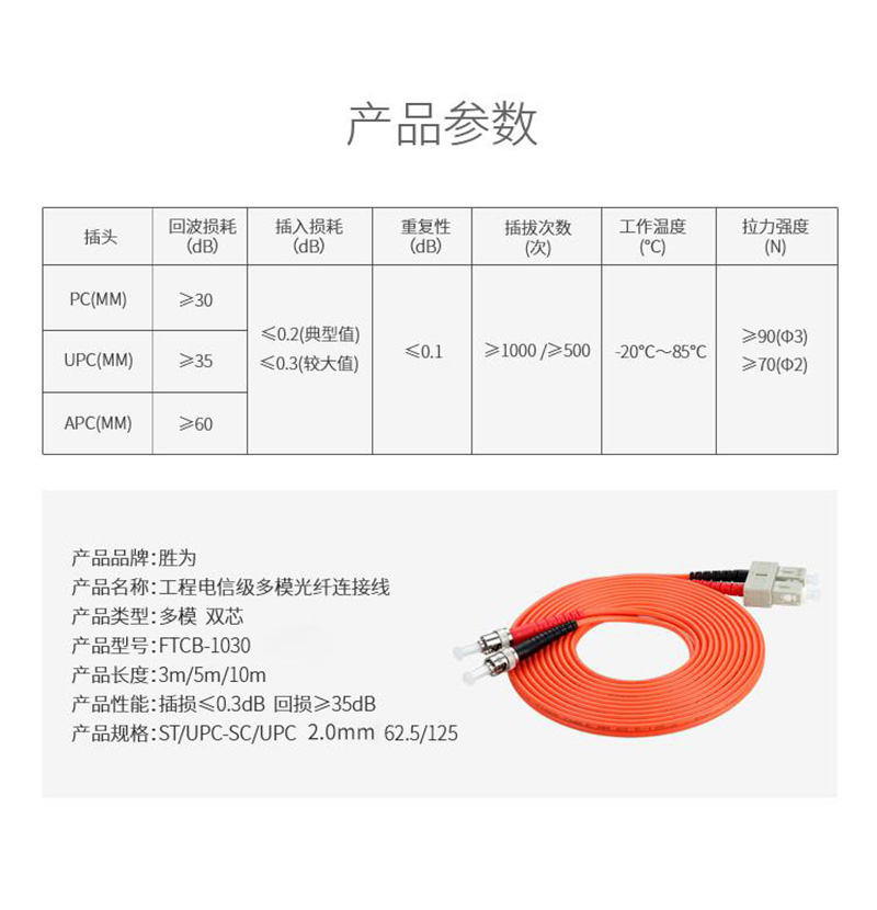 胜为 SHENGWEI FTCB-1030 工程电信级光纤跳线 ST(UPC)-SC(UPC)多模双芯 3米 随机