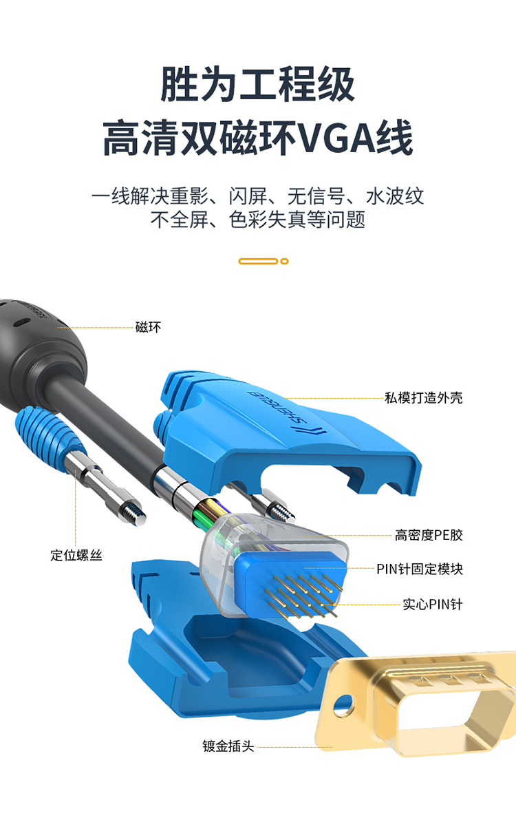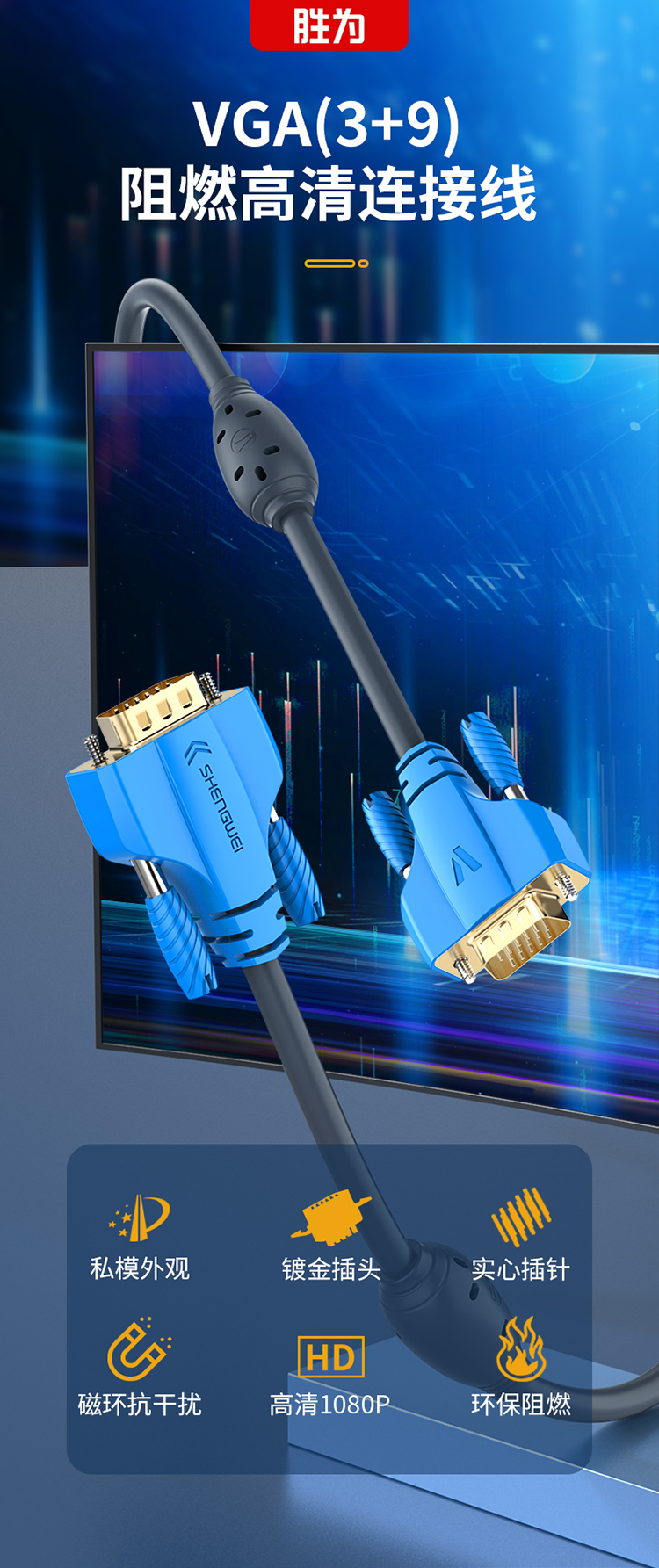 胜为 SHENGWEI VC-6030 3+9阻燃VGA高清信号连接线 3.0M 随机