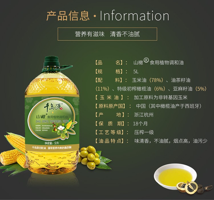 千岛源 山茶橄榄玉米食用调和油 5L 黄色