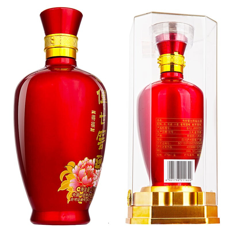泸州老窖 传世窖池 得福 浓香型白酒 42度 475ml*6瓶 红色