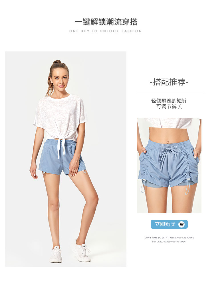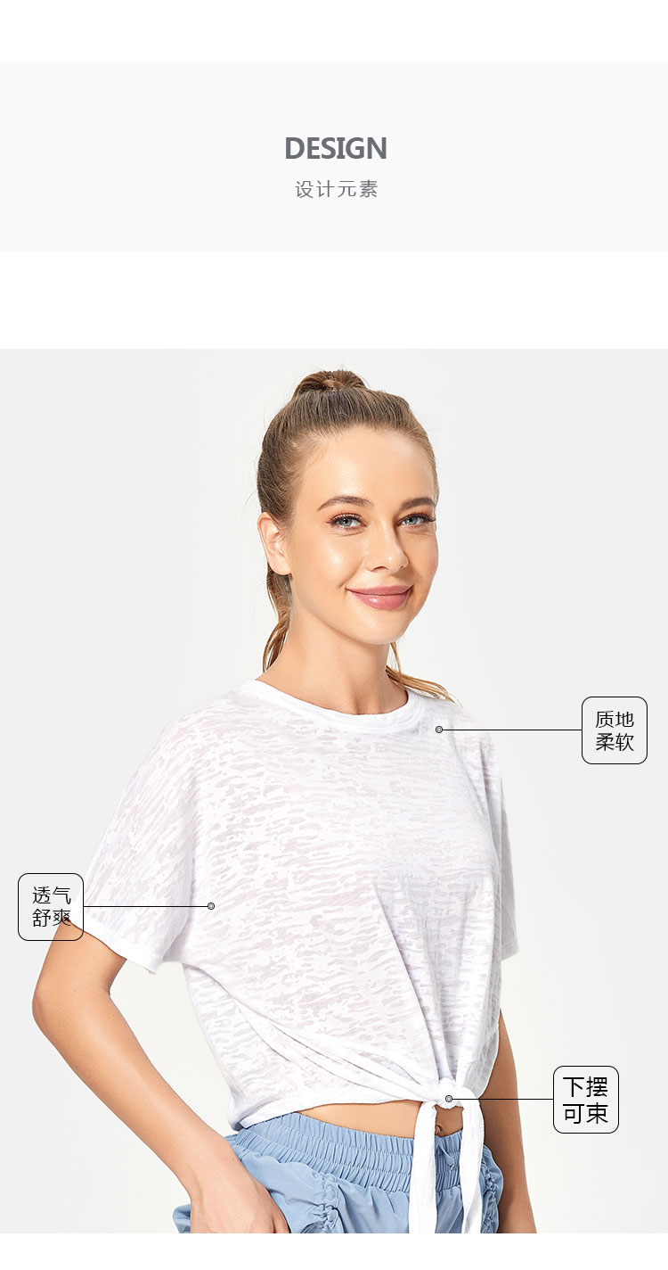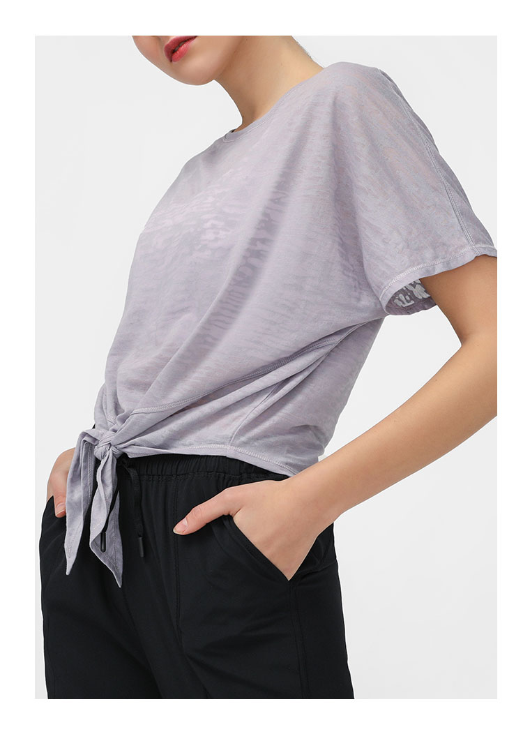 唯卡洛 vincrox运动上衣 运动健身跑步 女宽松休闲版型夏季短袖绑带设计T恤瑜伽罩衫 21403 淡雪青M