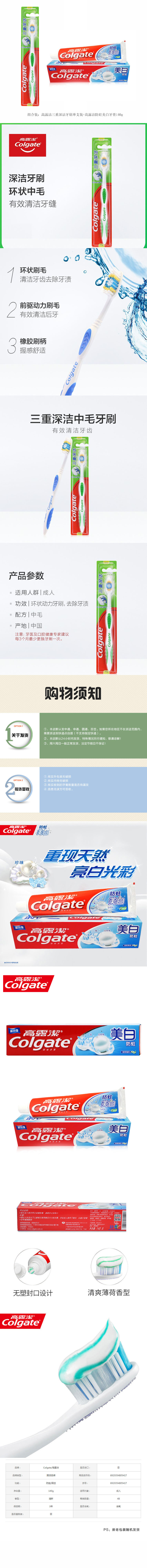 高露洁三重深洁牙刷单支装+高露洁防蛀美白牙膏140g/组 红色