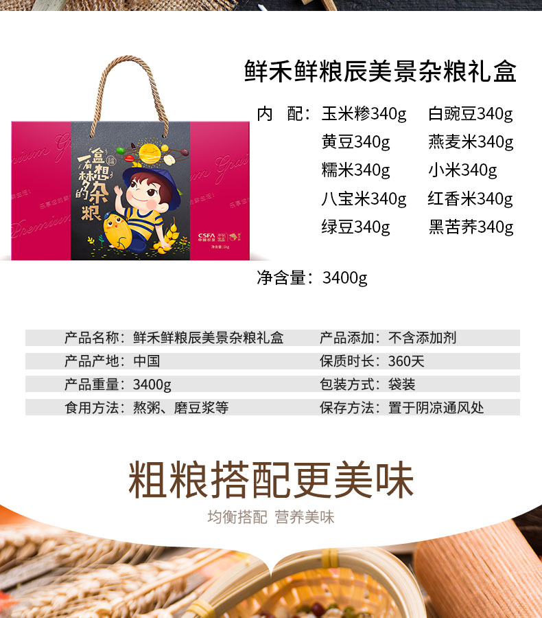 鲜禾鲜粮辰美景杂粮礼盒 红色 3400g