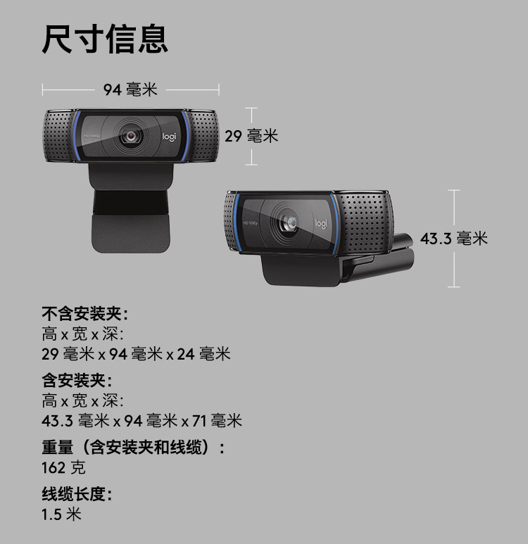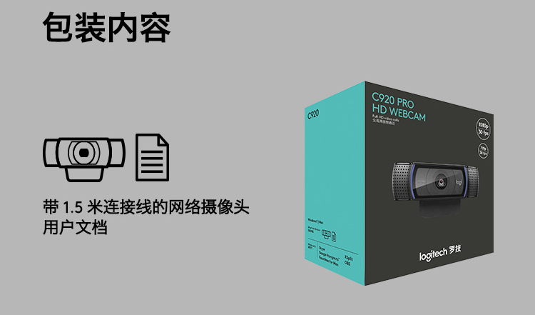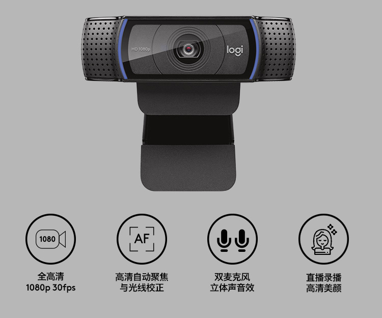 罗技 LOGITECH C920 PRO 高清摄像头 黑色