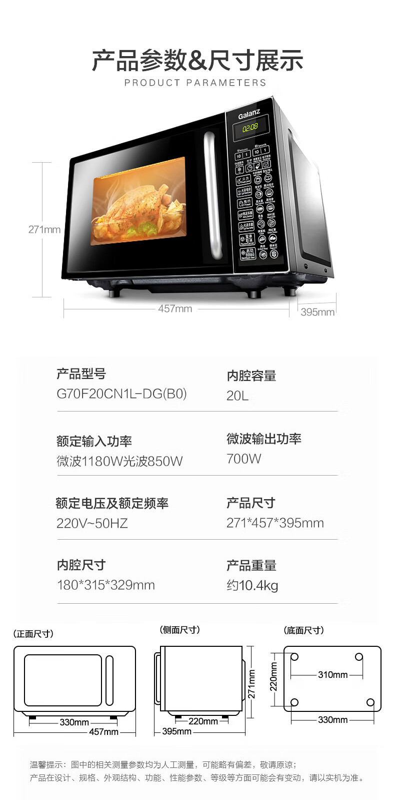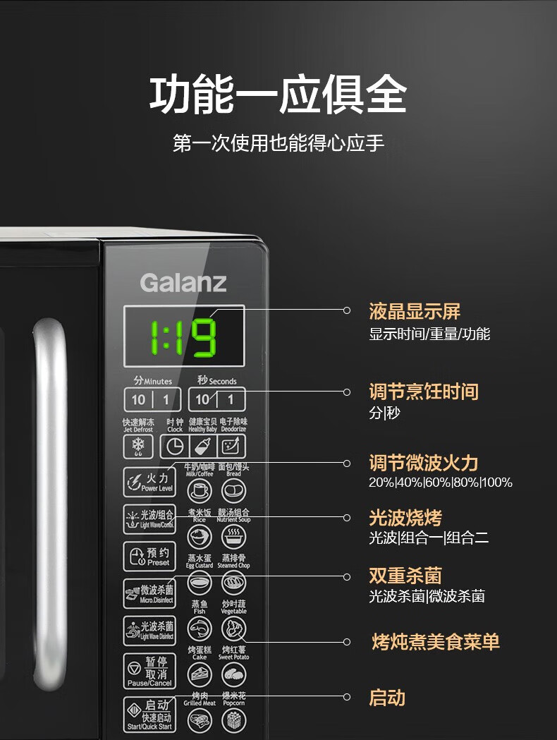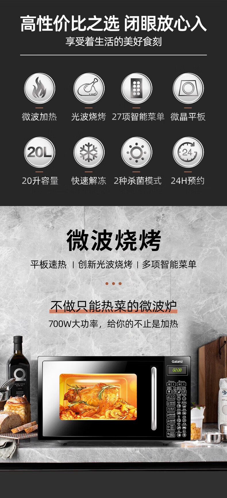 格兰仕微波炉 光波炉 家用烤箱一体机G70F20CN1L-DG/台 黑色