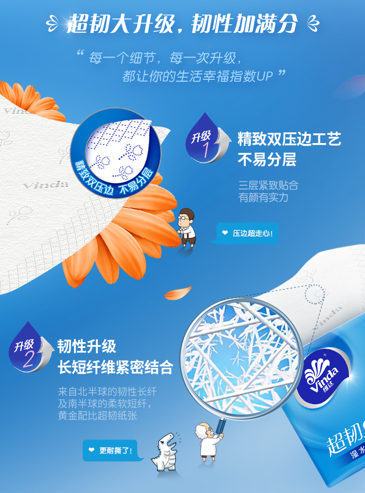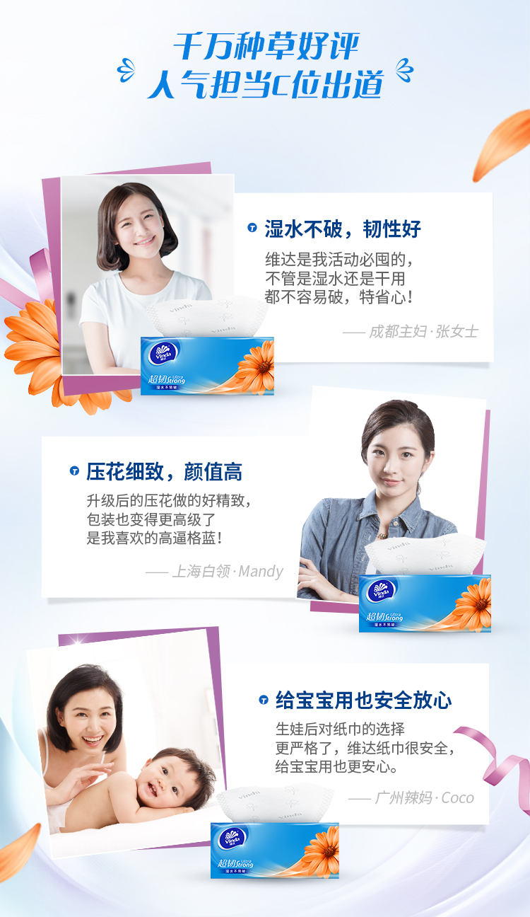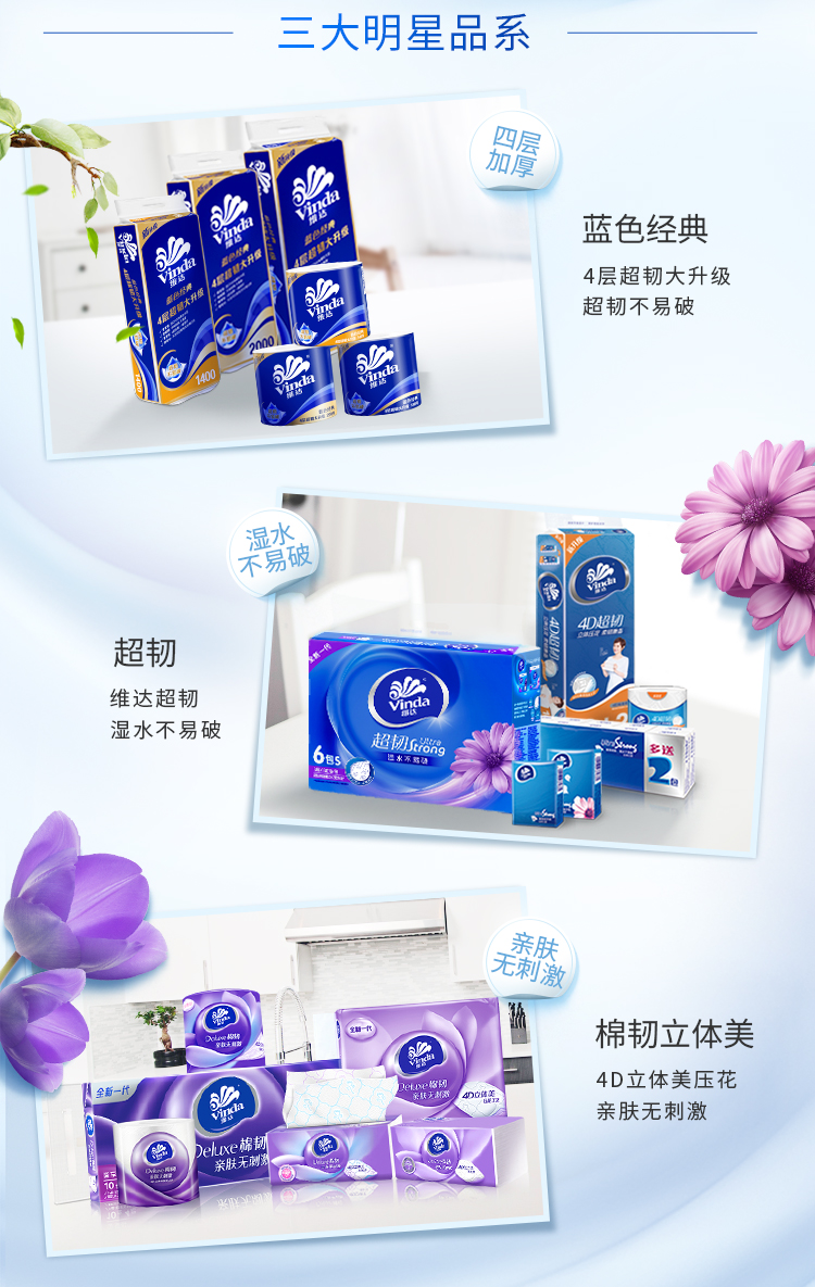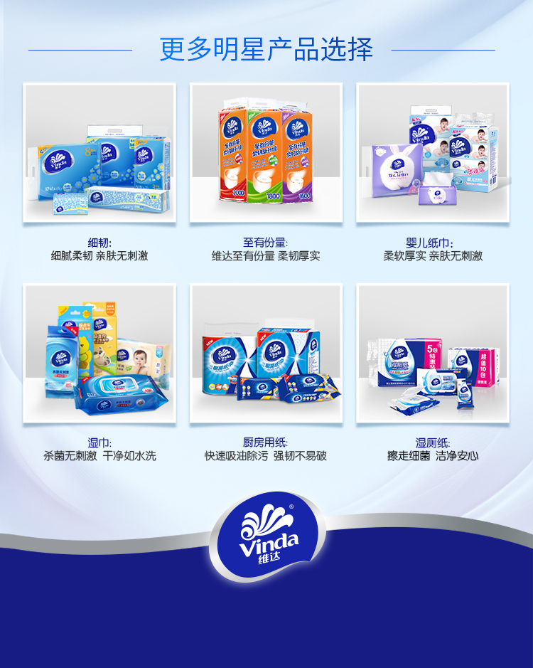 维达(Vinda) 超韧抽纸S码150抽3层*48包 抽纸面巾纸 整箱购买 宝石蓝
