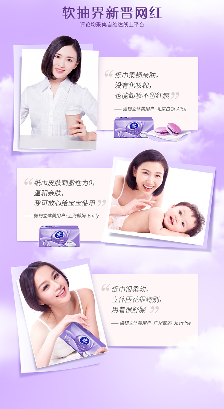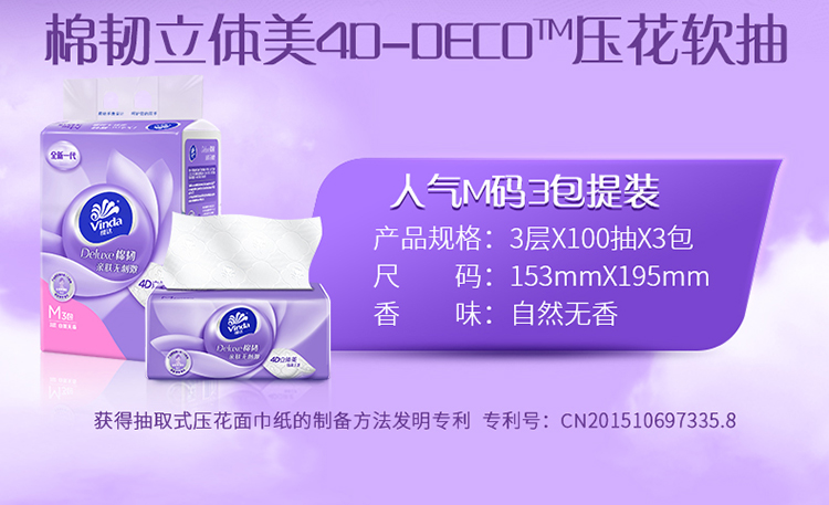 维达(Vinda) 棉韧抽取面巾 3层M码100抽*3包×4提 宝石蓝