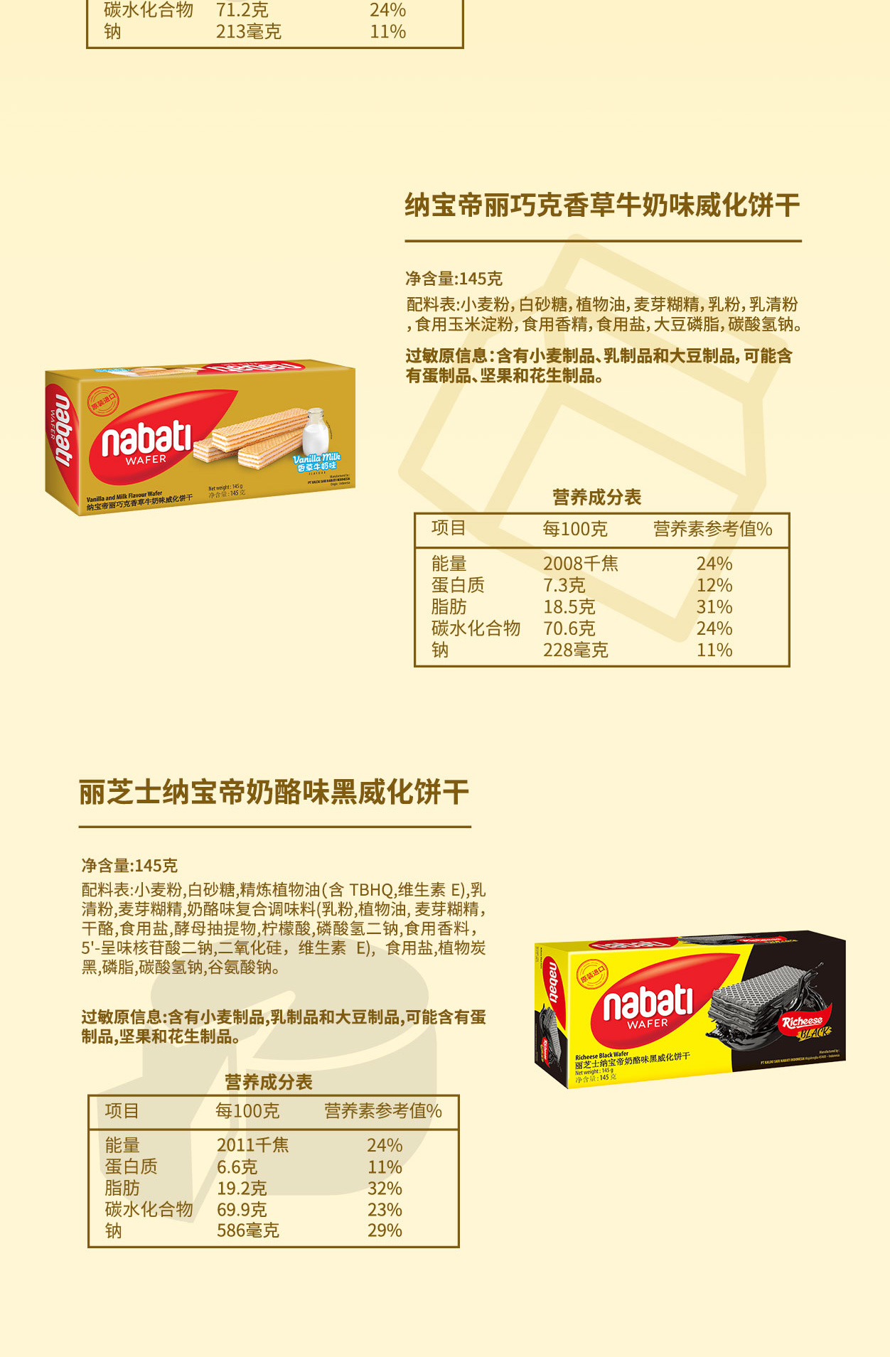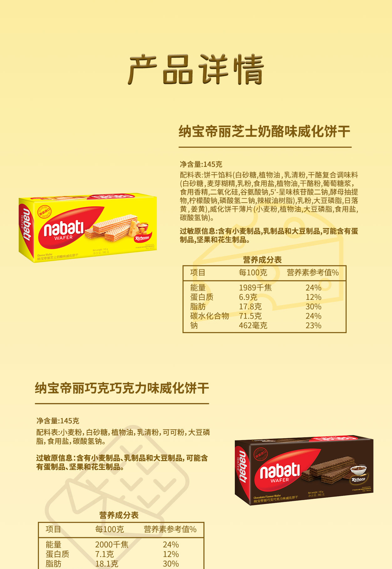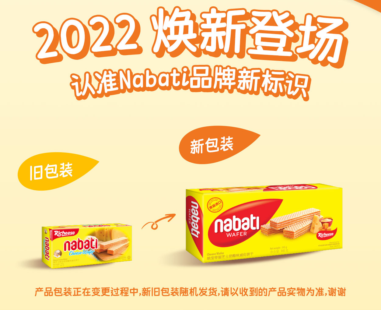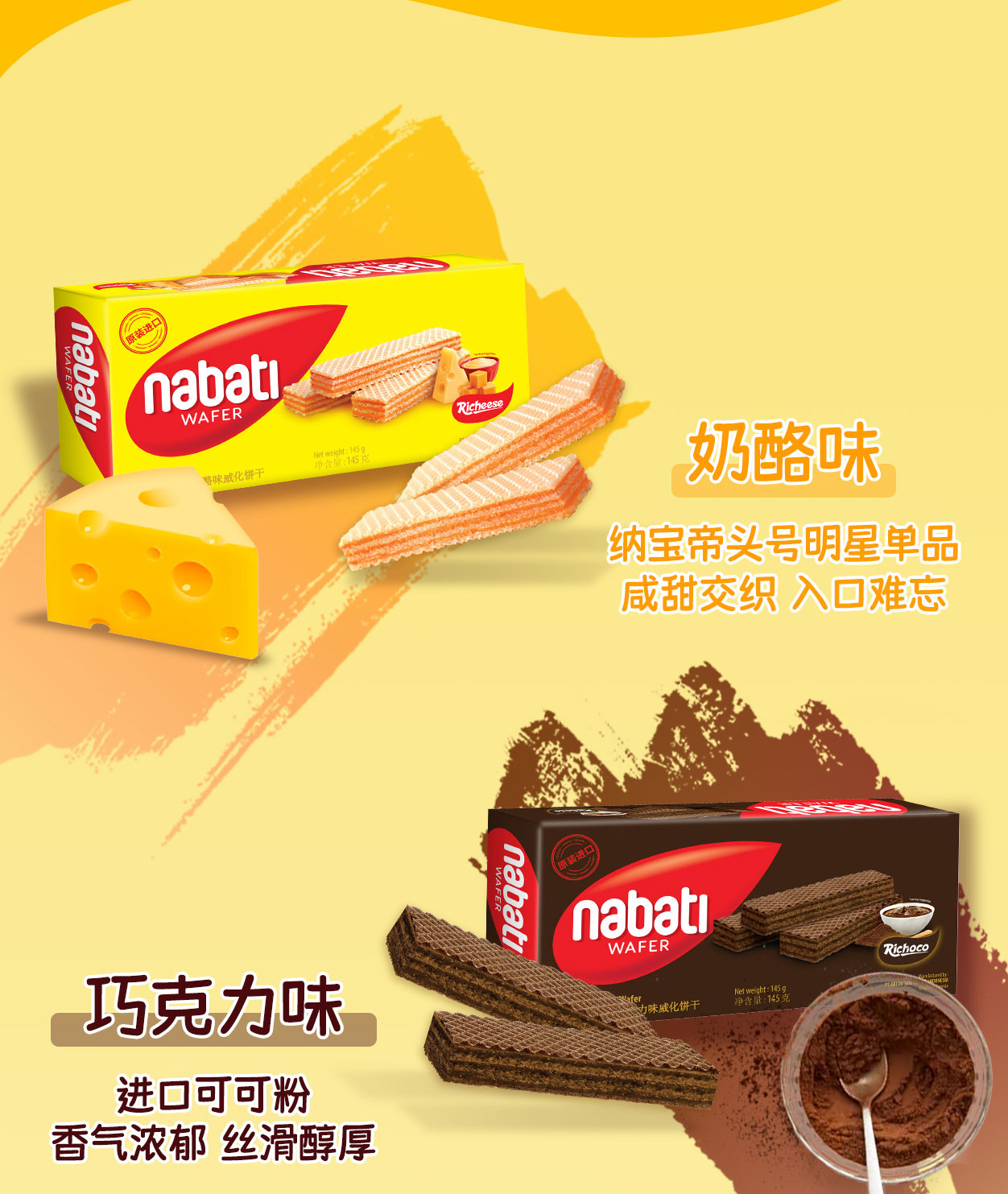 印尼进口 纳宝帝 丽芝士(Richeese) 休闲零食 奶酪味威化饼干 145g*4盒 金色