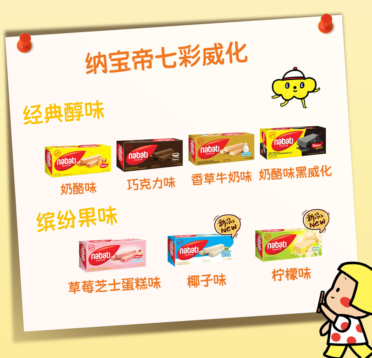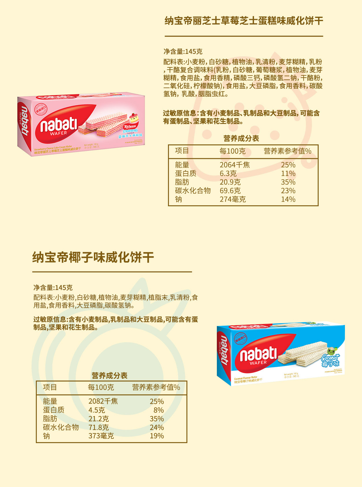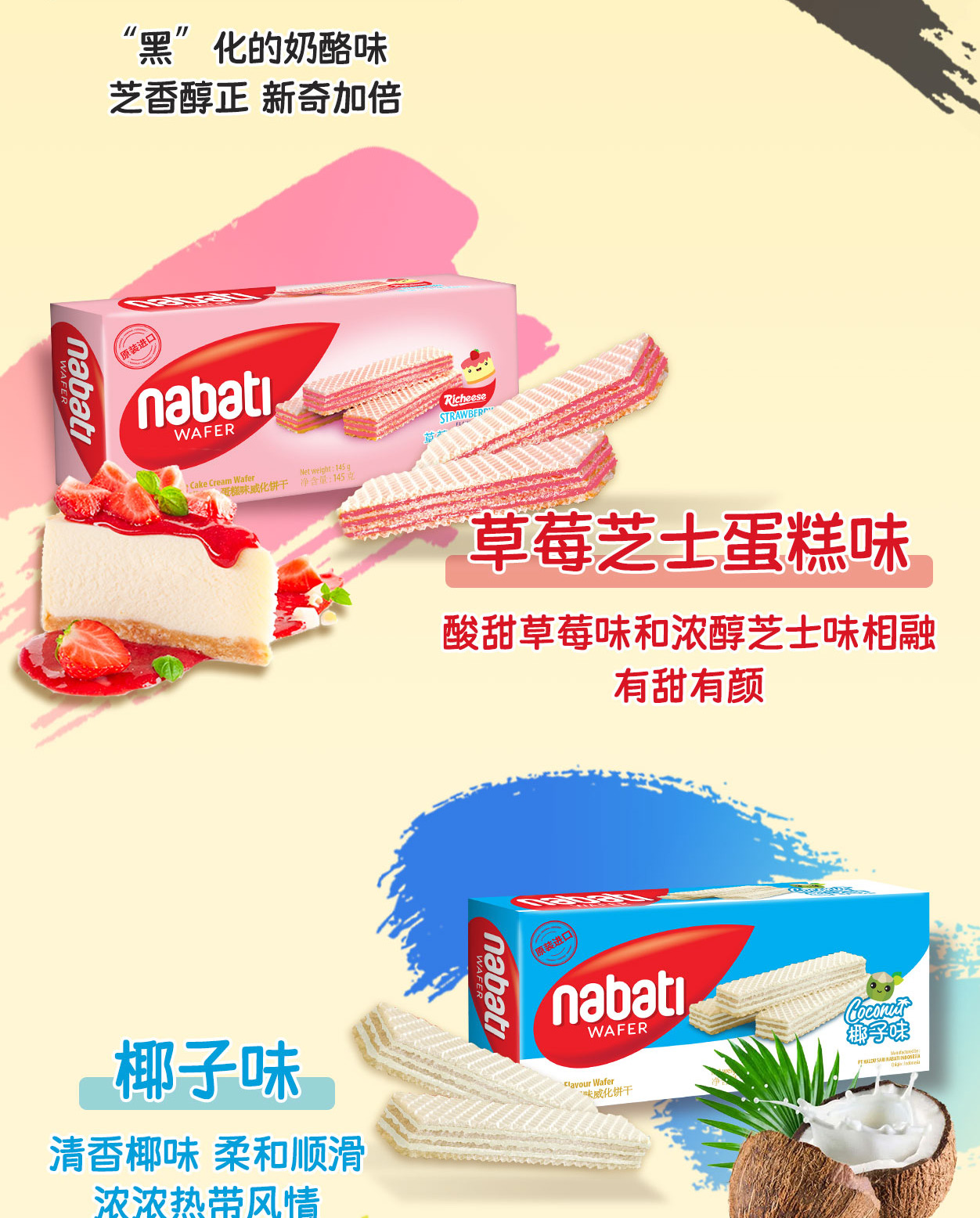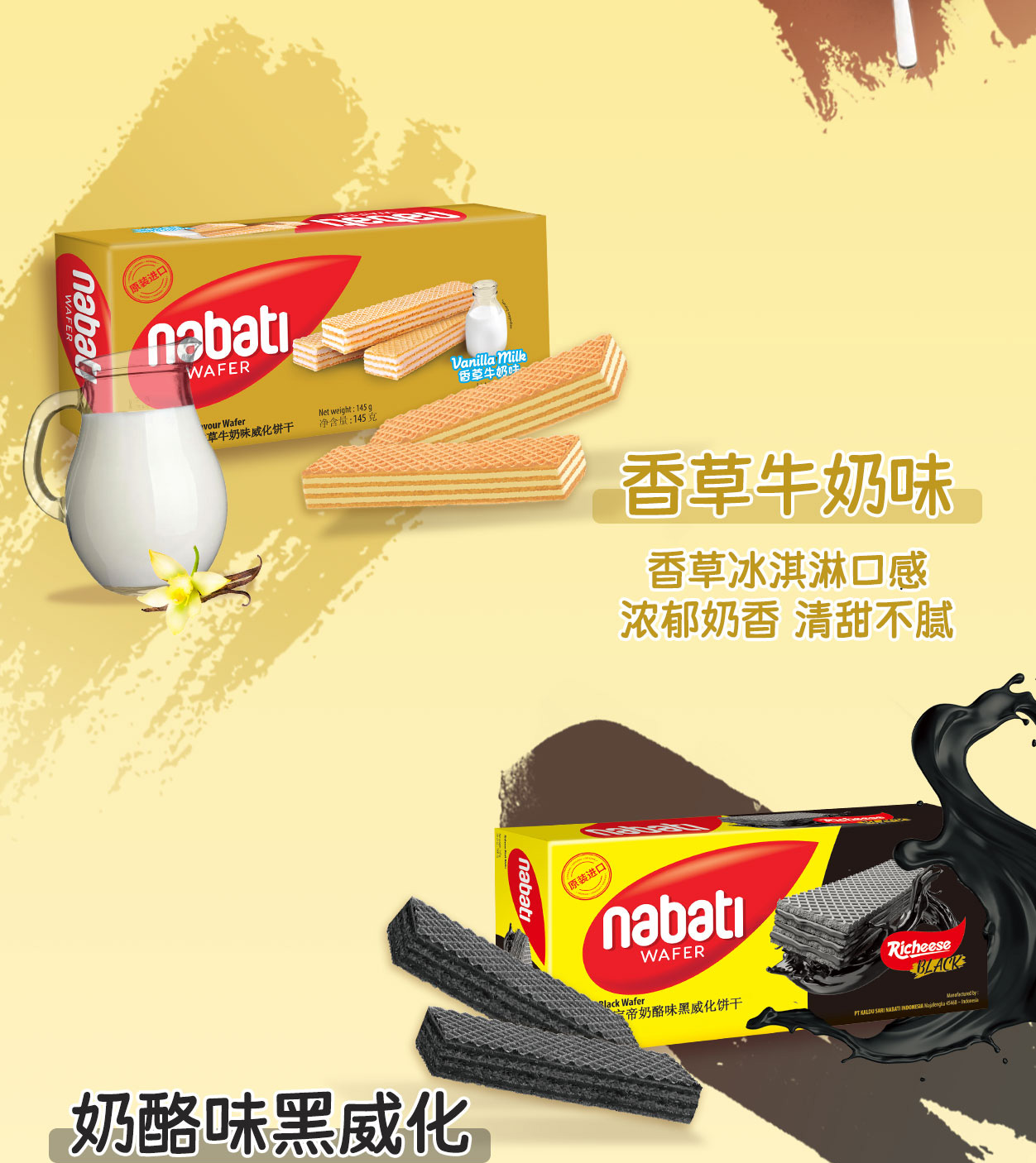 印尼进口 纳宝帝 丽芝士(Richeese) 休闲零食 奶酪味威化饼干 145g*4盒 金色