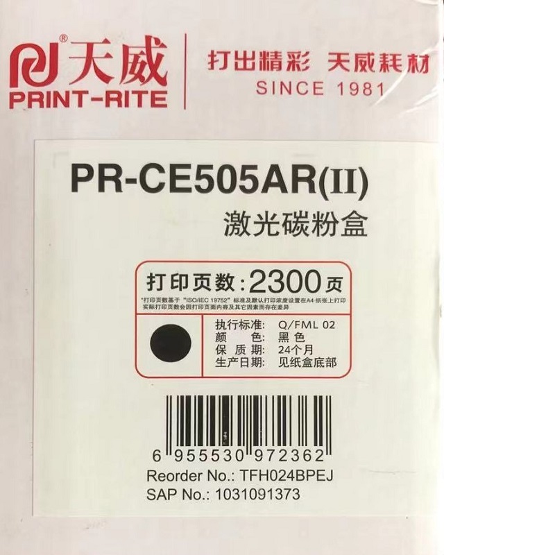 天威(PrintRite) PR-CE505A 专业装 适用于HP P2035等 硒鼓 1.00 只/支 (计价单位:支) 黑色