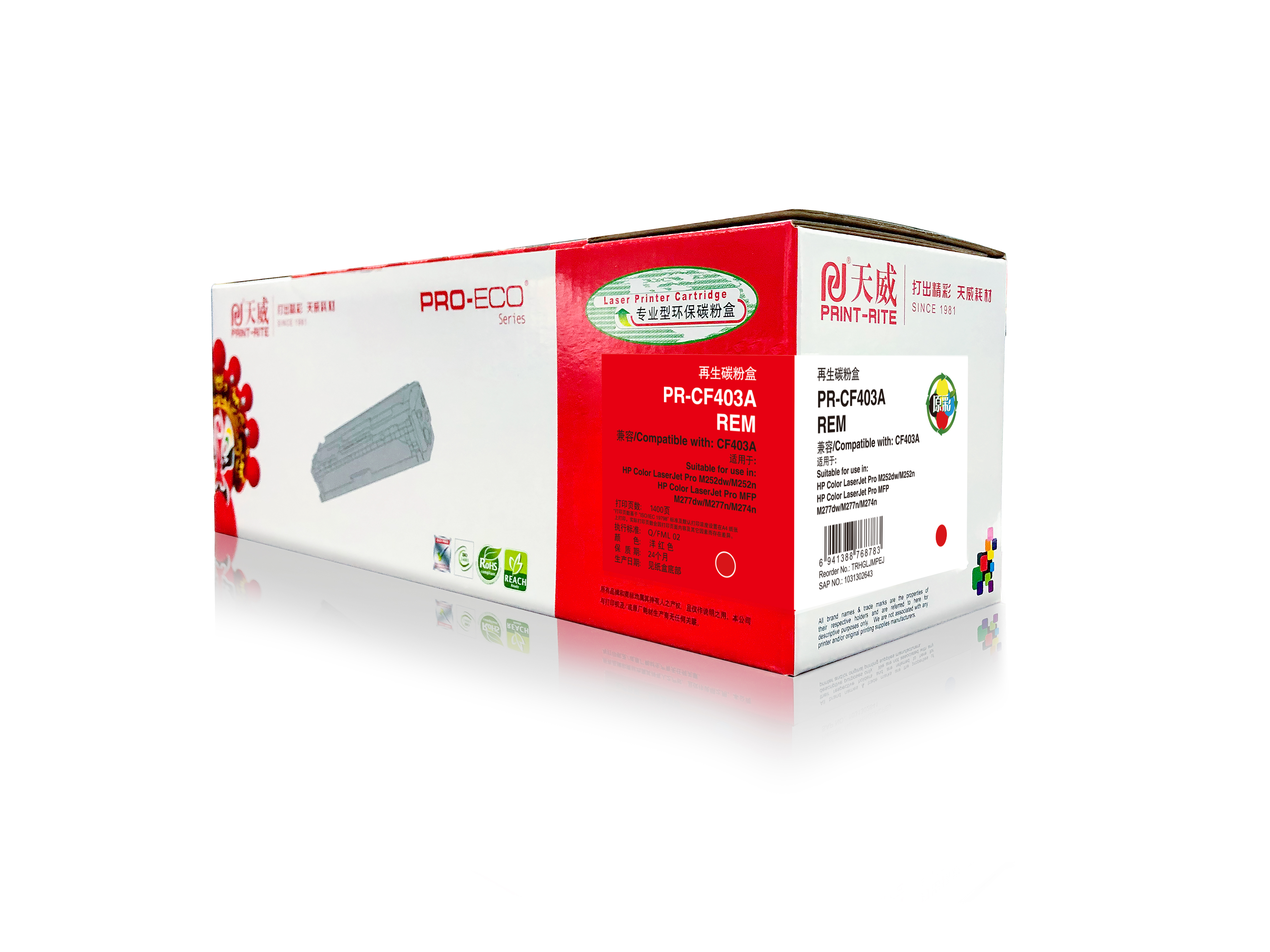 天威 适用于HP M252dw M252n MFP M277dw M277n M274n M252dw硒鼓 红色带芯片 专业装原彩版 CF403A硒鼓 201A 红色