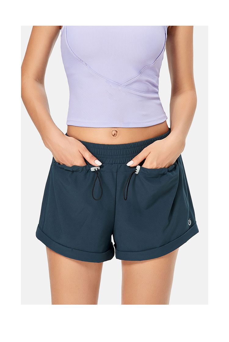 唯卡洛vincrox瑜伽短裤 跑动健身 女防走光夏季薄款高腰运动短裤 21402 藏青色M