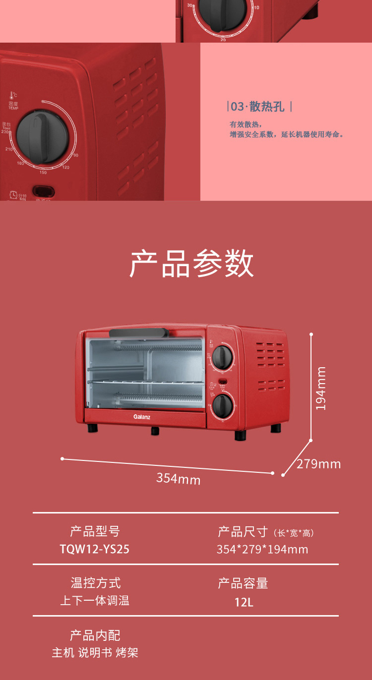 格兰仕(Galanz) TQW12-YS25 12L 电烤箱 红色(单位:台)