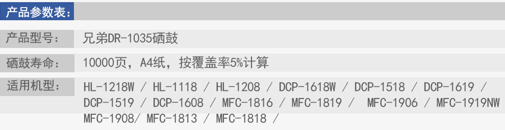 兄弟(brother)HL-1218W 1118 DCP-1618W 1919 DR-1035(不包含粉盒)DR-1035硒鼓 黑色