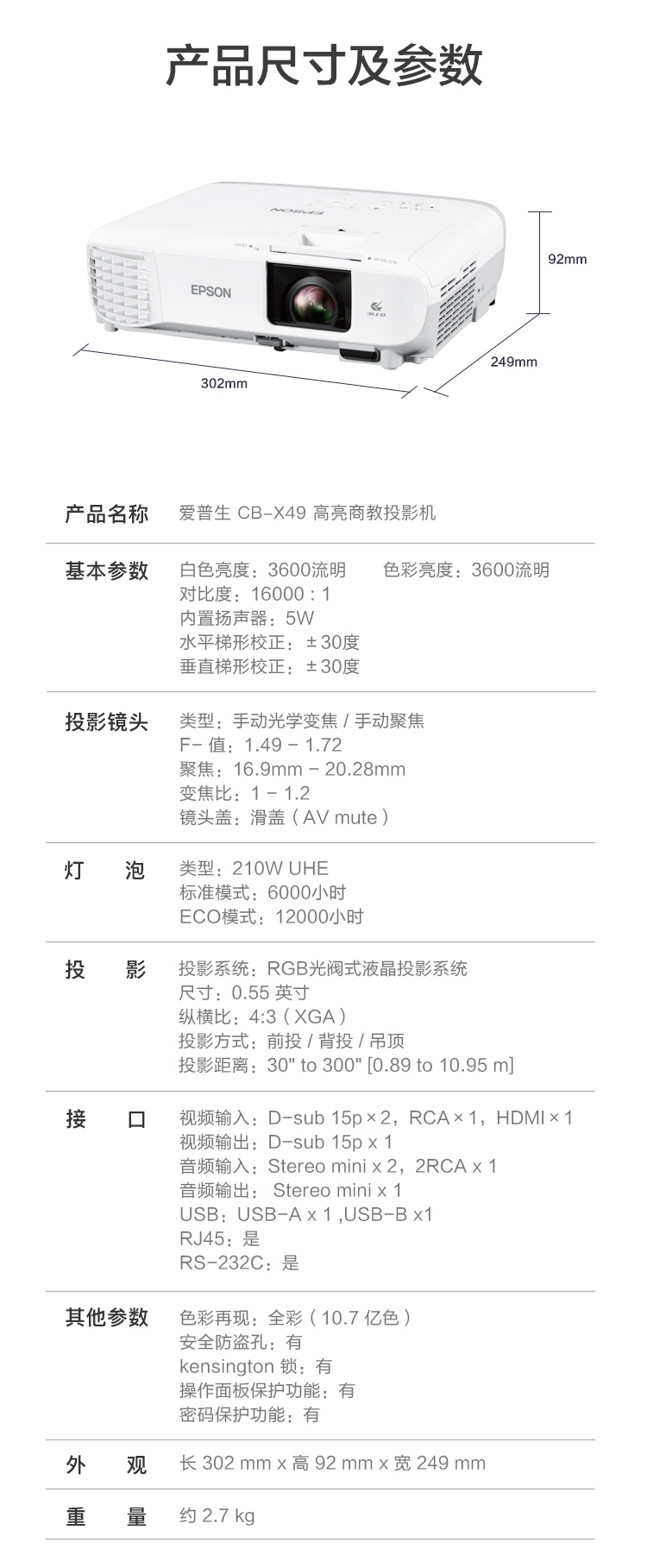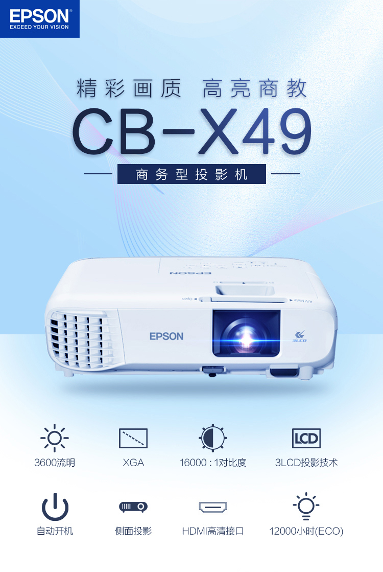 爱普生投影机(3600流明 1024*768分辨率)CB-X49 白色