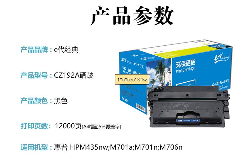 e代经典 CZ192A 打印量12000页 适用HPCZ192A M435nw等 硒鼓 1.00 只/支 (计价单位:支) 黑色