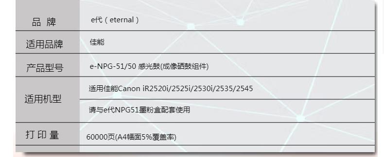 e代经典 NPG-51/50 打印量60000页 适用佳能Canon iR2520i 2525i 感光鼓 1.00 只/支 (计价单位:支) 黑色