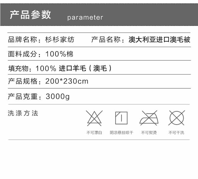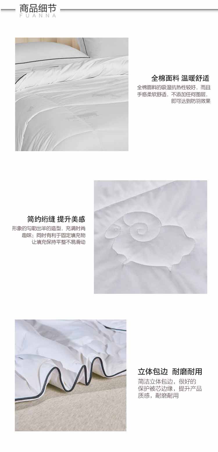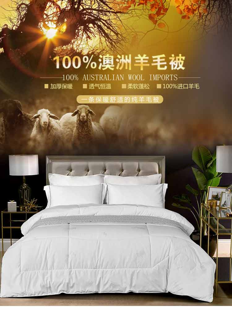 杉杉家纺澳大利亚进口羊毛被100%原料进口冬被QFS-20139 白色