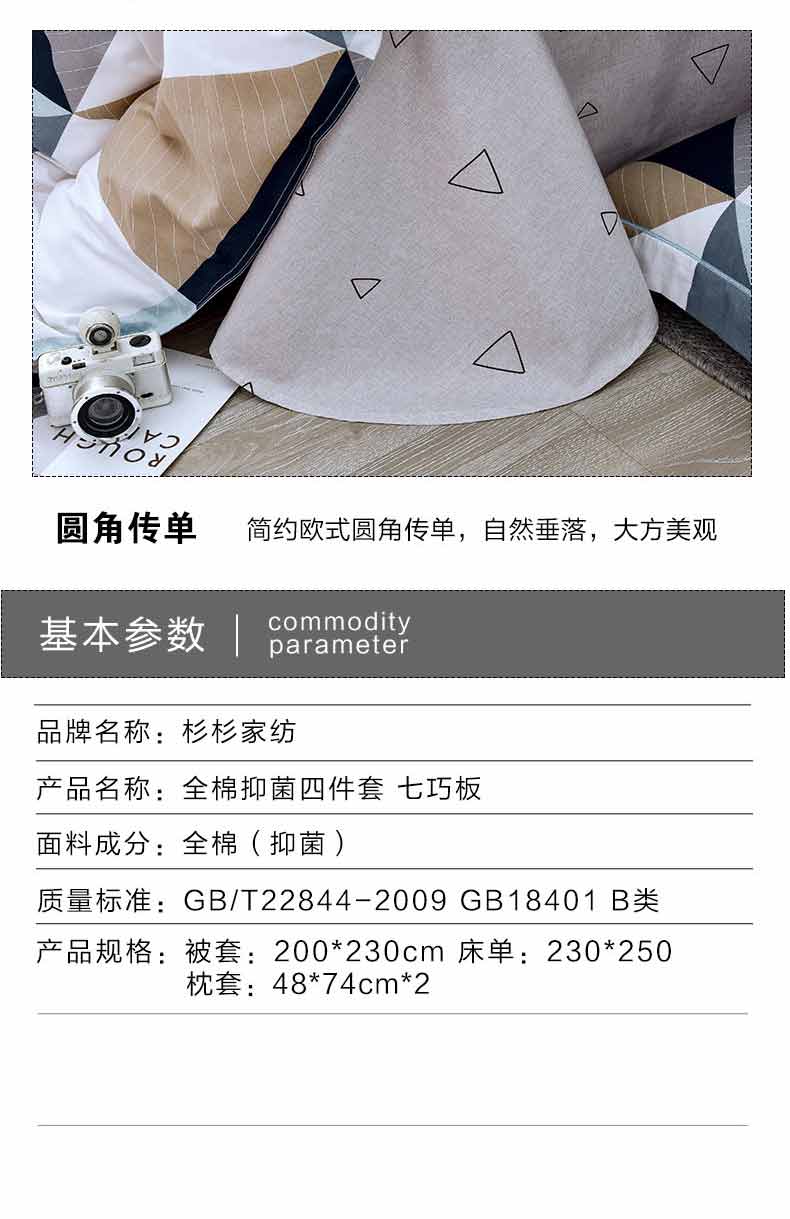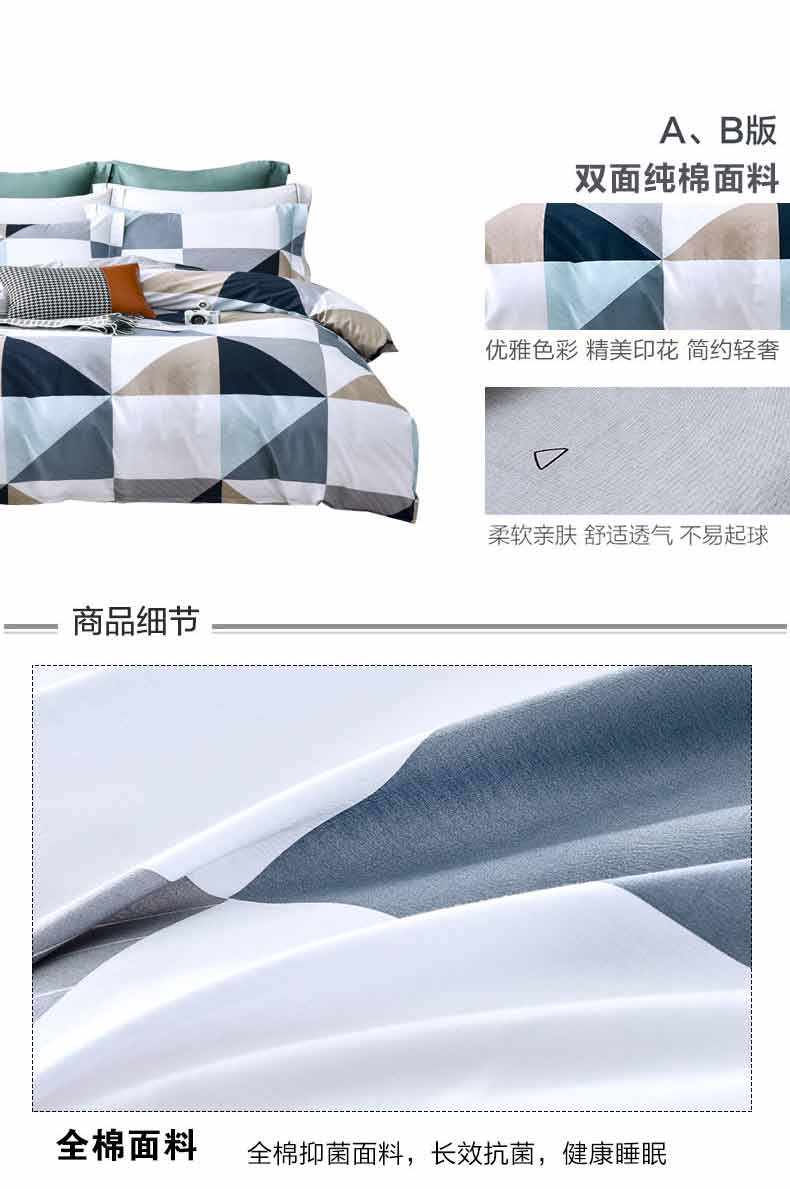 杉杉家纺抑菌全棉四件套QFS-12089 七巧板 混色