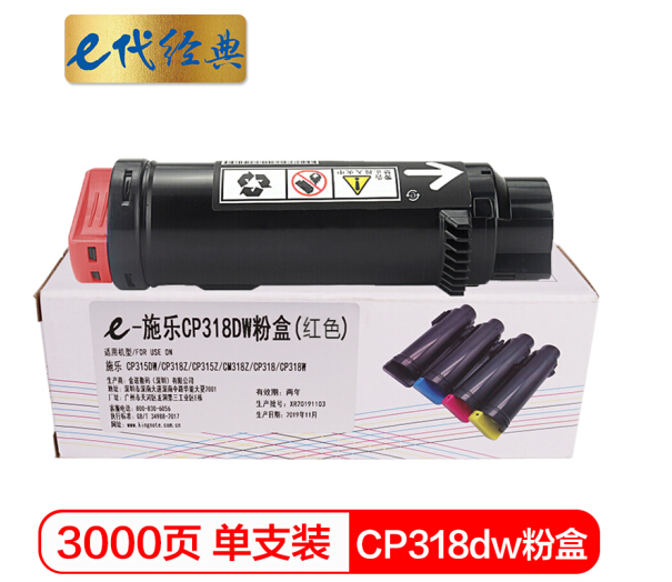 e代经典 CP318dw 红色3000页 适用施乐DocuPrint CP315DW 粉盒 1.00 只/支 (计价单位:支) 红色