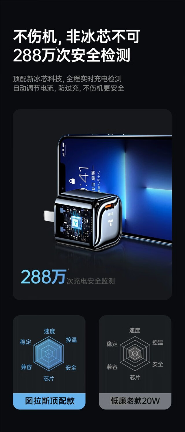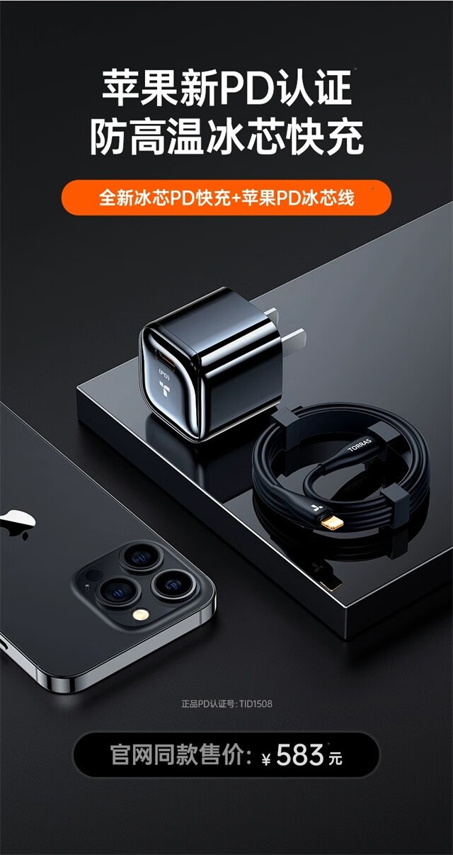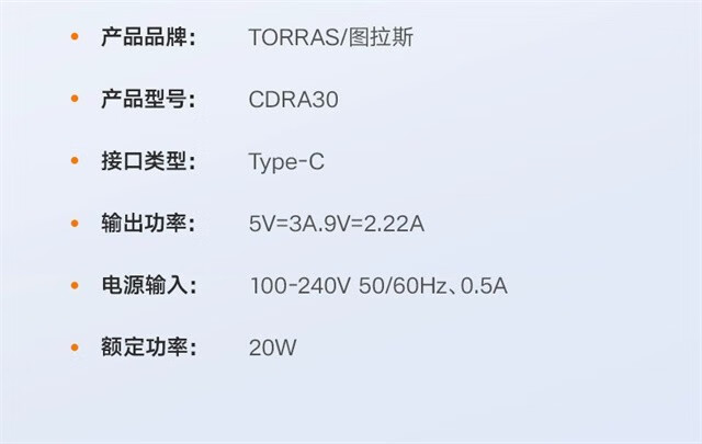 图拉斯TORRAS T17旅行充电器带1.68米悦芯Lite线 (单位:个) 黑色