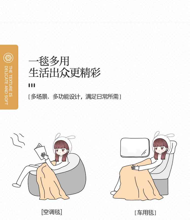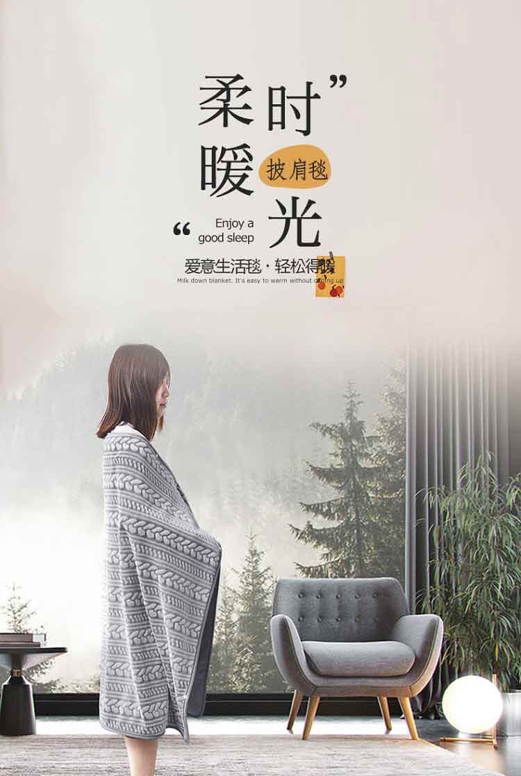 杉杉家纺爱意生活披肩毯生活毯QFS-20911 浅灰色 珍珠灰 灰色