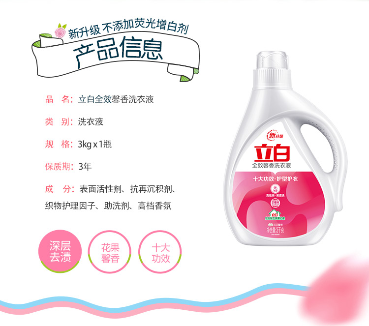 立白 全效馨香 3kg 洗衣液 粉红色(单位:瓶)