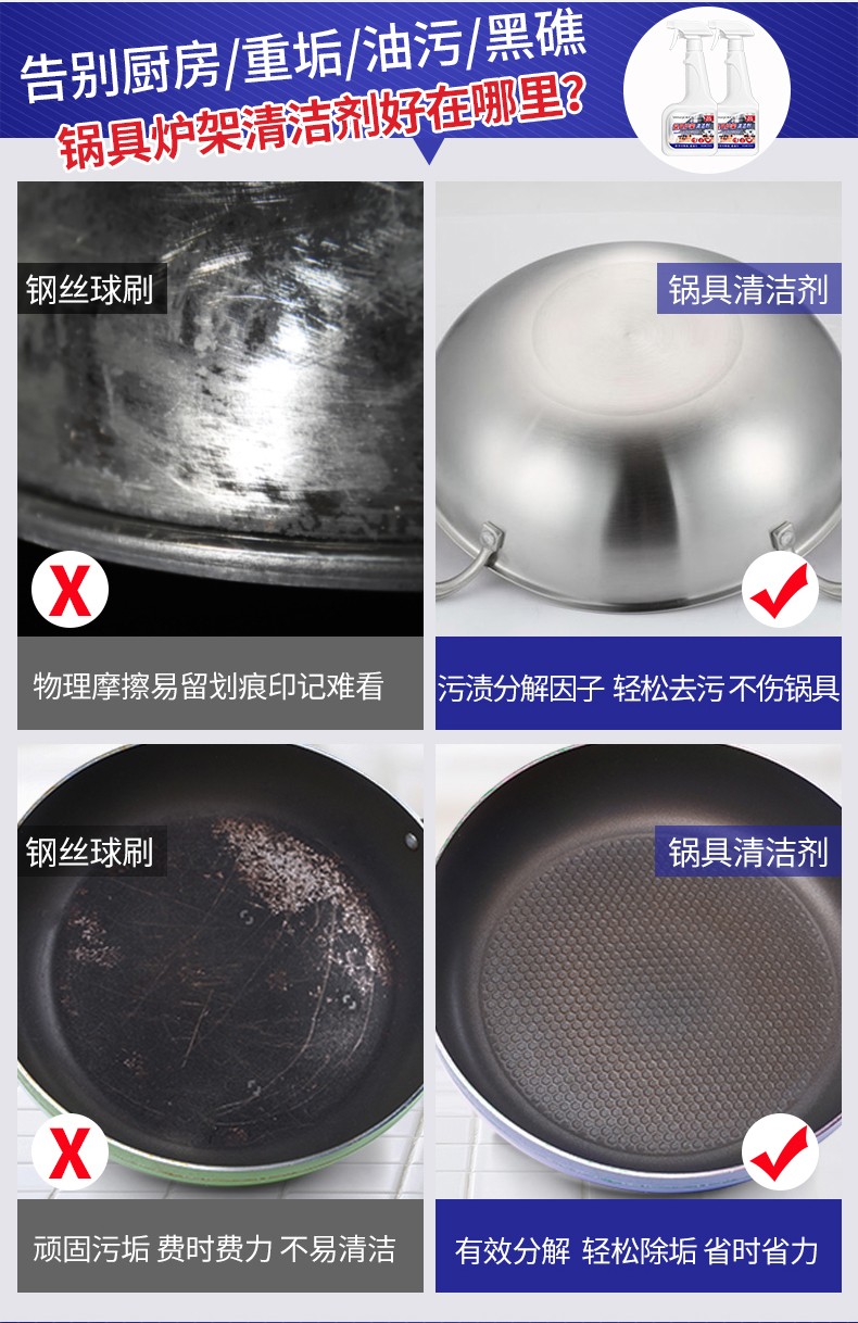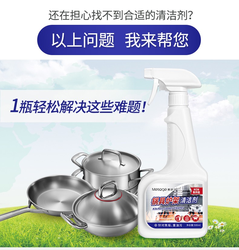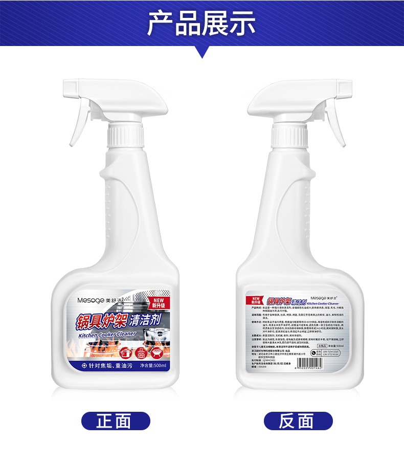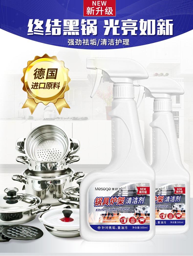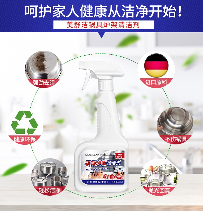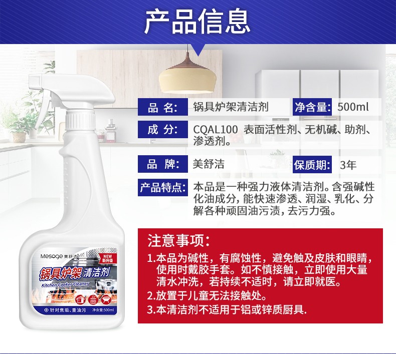 【500ML*3瓶】美舒洁锅具炉架清洁剂500ml 强力去污锅底黑垢去烧痕家用厨房清洗剂 HP201903300002 锅具清洁剂500ml*3瓶