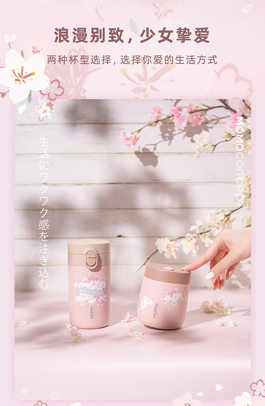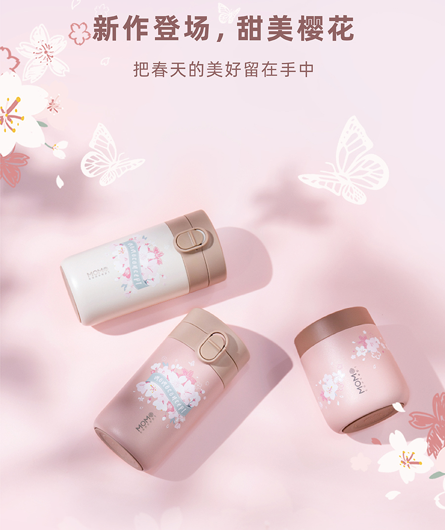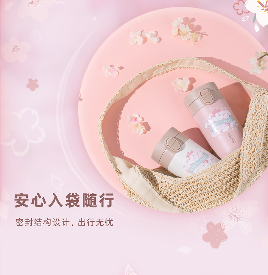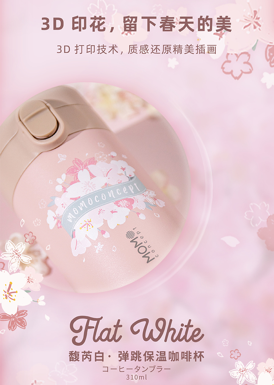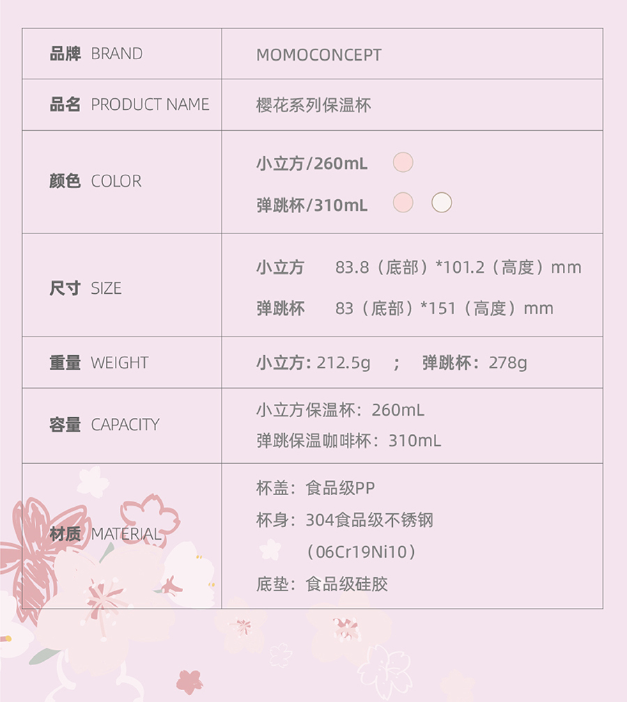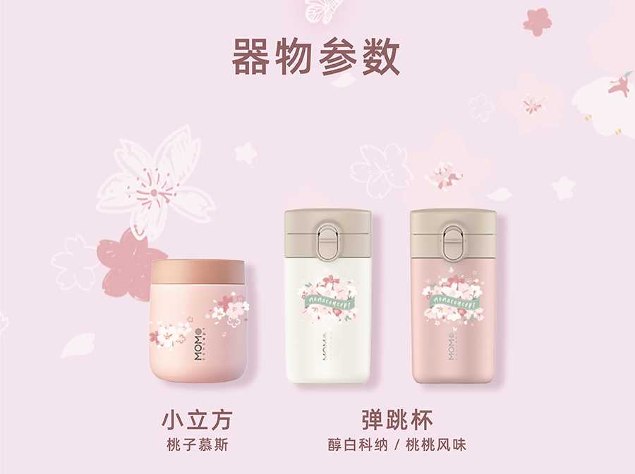 日本momoconcept 樱花水杯女高颜值便携咖啡保温杯小260ml 小立方桃子慕斯